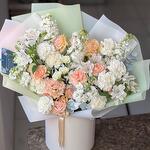 Eustoma - 7 adet Spray rose - 5 adet dianthus - 15 adet astromelia - 5 adet şebboy - 5 adet