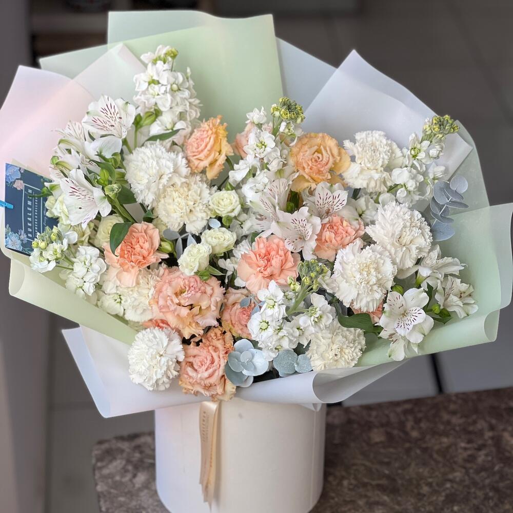 Eustoma - 7 adet Spray rose - 5 adet dianthus - 15 adet astromelia - 5 adet şebboy - 5 adet