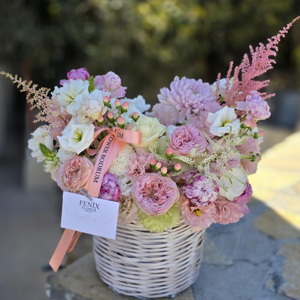 Eustoma - 21 adet Peony - 5 adet astilbe - 3 adet rosa - 9 adet rosa spray - 9 adet hipericum - 5 adet anastasya - 9 adet