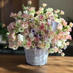 Изменили все цветы в букете без предупреждения. Вместо 51 эустомы пришли розы и астры.