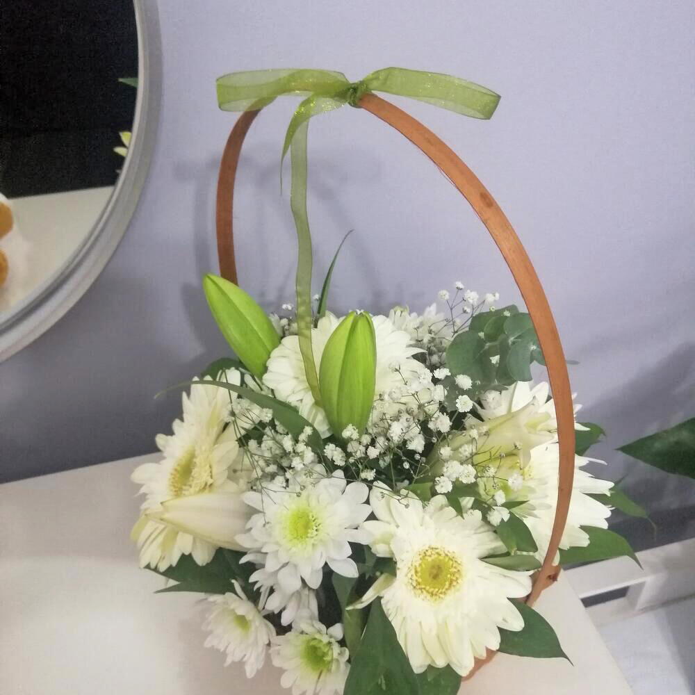 Çiçek sepeti beyaz sevda