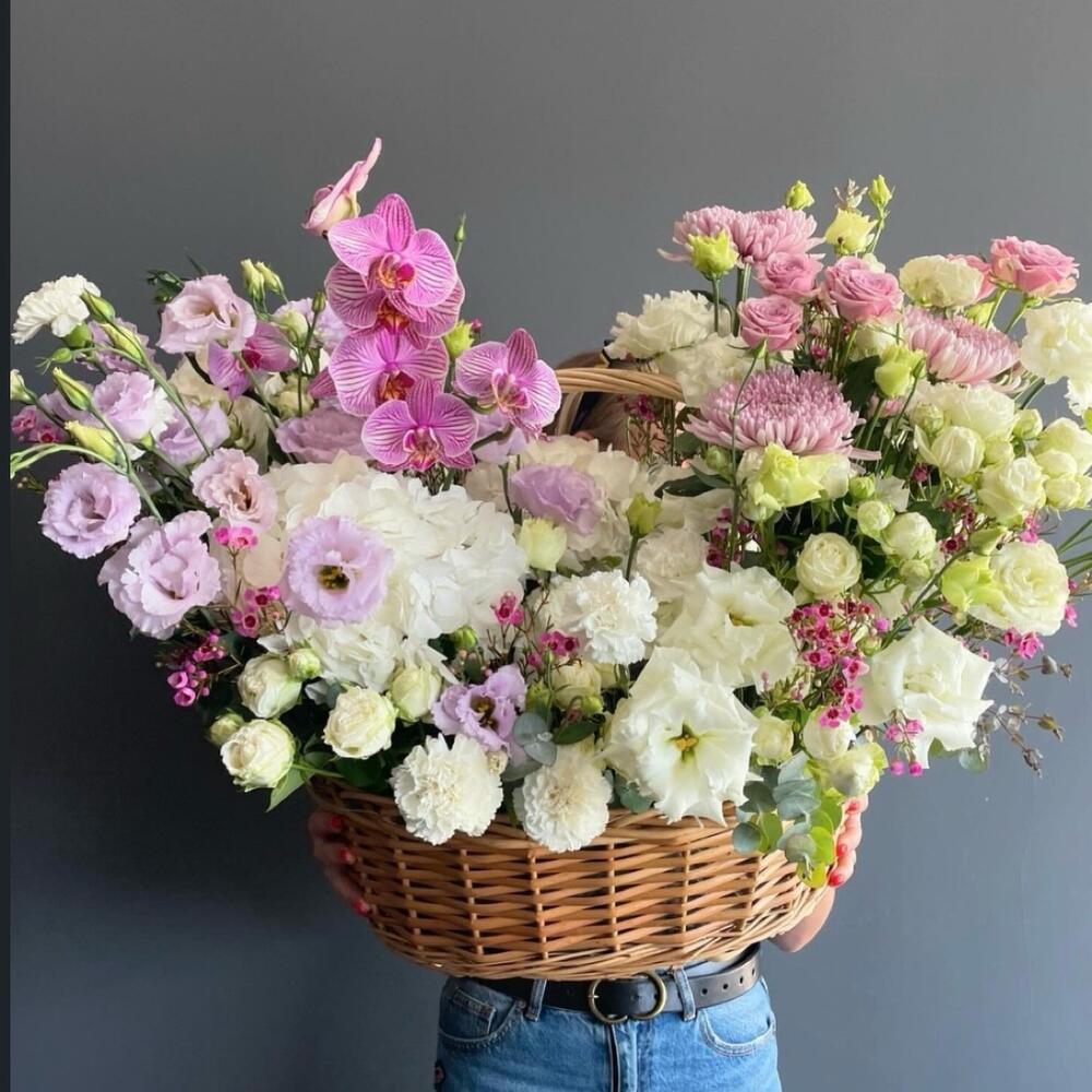 Bu zarif sepet, rengarenk çiçeklerin muhteşem birleşiminden oluşmaktadır. Sepetimizde, 18 adet büyüleyici mor lisyantus, 8 adet sofistike mor anastasia, etkileyici bir beyaz ortanca, 2 adet egzotik mor orkide ve 20 adet narin beyaz lisyantus bulunmaktadır. Bu çiçeklerin muhteşem düzenlemesi, hem göz alıcı bir görünüm sunar, hem de herhangi bir ortama hemen lüks bir dokunuş katılmasını sağlar. Renkleri ve çeşitleriyle, bu sepet çiçekler mükemmel bir hediye olabilir veya kendi yaşam alanınızı güzelleştirebilir.