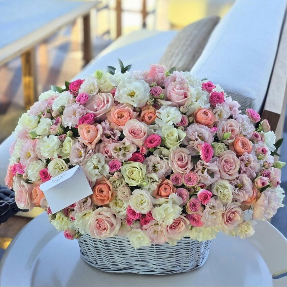 Bu zarif sepet, 33 adet canlı Rosa, 21 adet Spray rose, 51 adet narin Eustoma ve 15 adet diğer benzersiz çiçeklerle doludur. Özenle hazırlanan bu çiçek sepeti, hediye etmek için en iyi seçeneklerden biri olacaktır. Her çiçek, renklerin ve dokuların sofistike bir karışımını yaratmak için özenle seçilmiş ve hassas bir estetik anlayışı ile düzenlenmiştir. Bu çarpıcı çiçek aranjmanı, sevdiklerinizin gününü daha parlak ve daha özel hale getirecek.