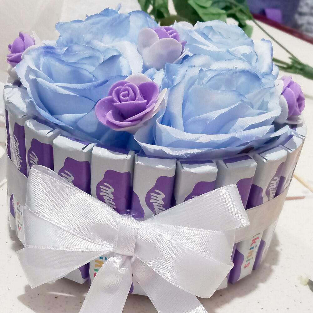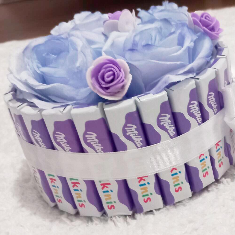 Milka Milkinis ile hazırlanmış eşsiz bir çikolata çiçek buketi. Bu muhteşem güller ile zenginleştirilmiş, 20 adet lezzetli Milka Milkinis çikolata ve 4 adet büyük premium kalite gül ayrıca 5 adet küçük gül içerir. Bu tatlı sürpriz, sevdiklerinizin yüzünde büyük bir gülümseme yaratmaya hazır. Şık tasarımı ve leziz çikolatalarıyla bu buket, herhangi bir özel durum için mükemmel bir hediye seçeneği olacaktır. Şimdi sipariş verin ve sevdiklerinizi çiçeklerin zarifliği ve çikolatanın tatlılığı ile şımartın! (20 adet milka milkinis, 4 büyük boy gül ve 5 adet küçük güllerden oluşmaktadır.)