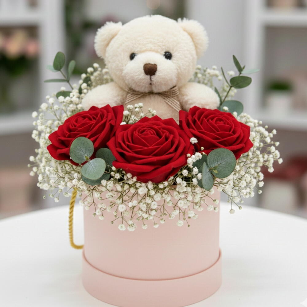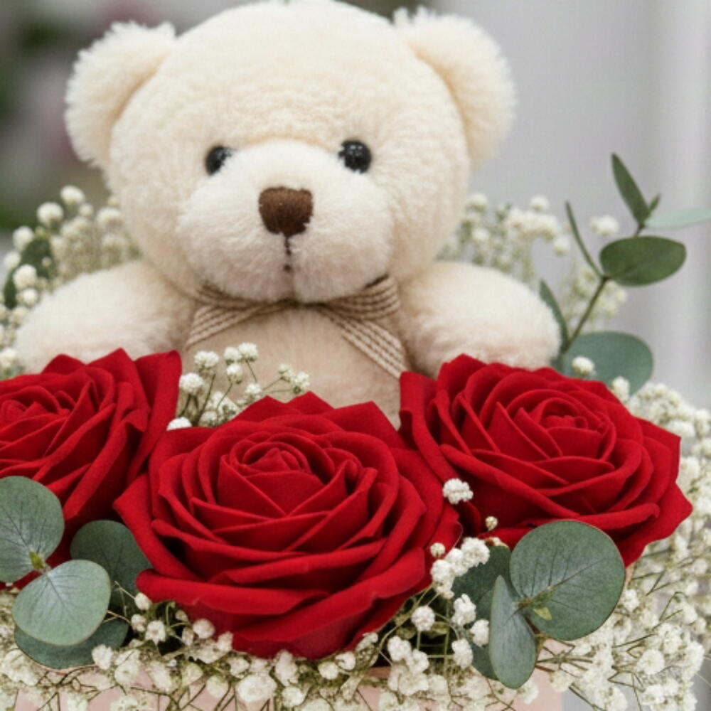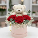 Cipso eşliğinde Kutuda ayıcık ve gul