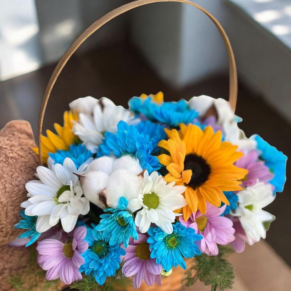 Hasır sepette ayıcık hediyeli bu aranjman, içerisinde karışık mevsim renklerinden oluşan papatyalar ve ayçiçekleri ile hazırlanmıştır. Kuru otlarla süslenerek son dokunuşları yapılan sepet aranjmanı farklı bir hediye vermek isteyenler için özenle hazırlanmaktadır! Hem çiçek hem hediye konseptini bir arada bulunduran sepet aranjmanımız, mevsim renklerine ve sizin isteğinize göre hazırlanan renkli papatyalarla süslenmiş, ayçiçekleri ile canlandırılmıştır. Sevdiklerinizi mutlu etmenin en güzel yolunu bu aranjmanda bulacaksınız!