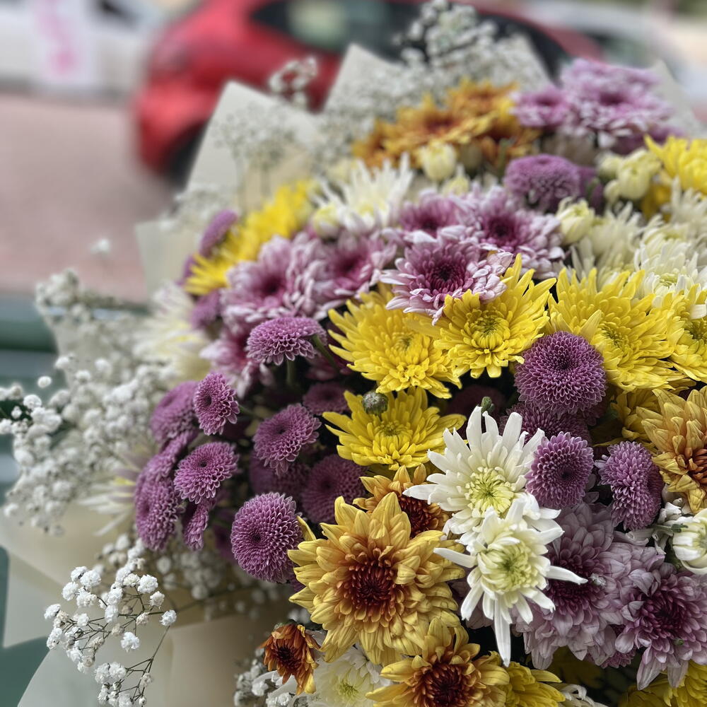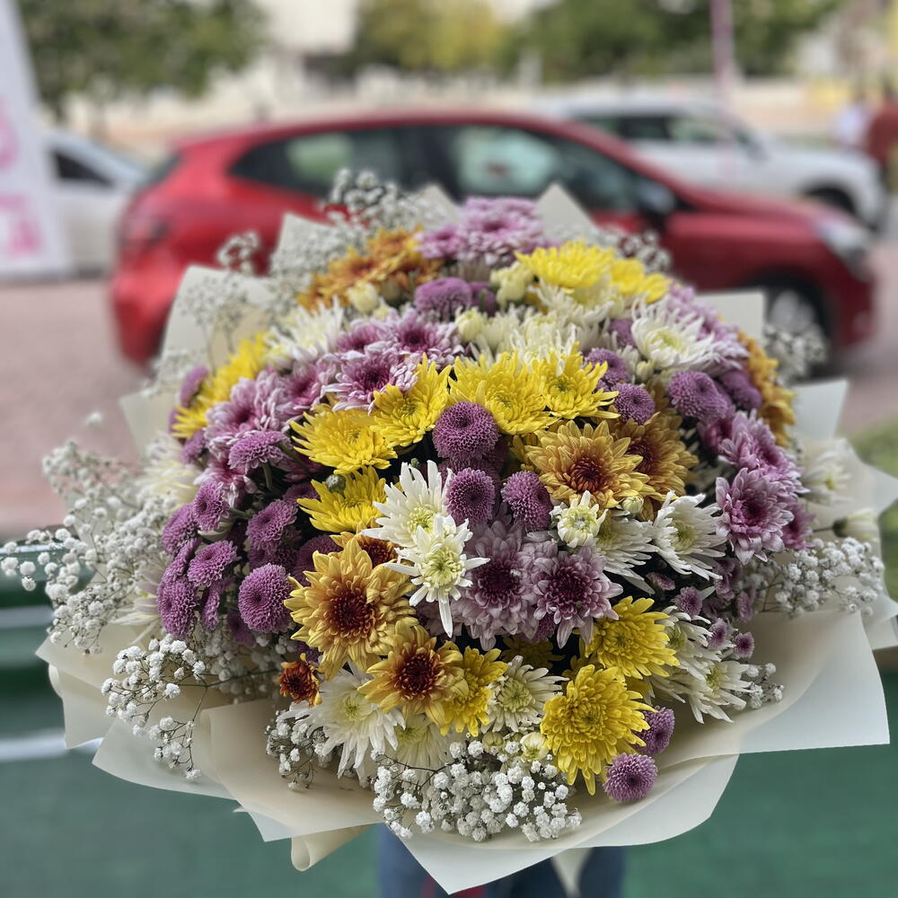 cipso - 15 adet pembe kasımpatı (chrysanthemum) - 50 adet beyaz kasımpatı (chrysanthemum) - 50 adet sarı kasımpatı - 30 adet kasımpatı mor - 11 adet