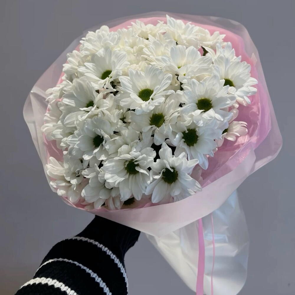 🤍 Beyaz Zarafet – Dolgun Papatya Buketi 🤍 Yoğun ve dengeli formuyla hazırlanan bu beyaz papatya buketi; sadeliği sevenler için güçlü, temiz ve ferah bir etki yaratır. Dolgun yapısı sayesinde minimal değil, net şekilde büyük bir bukettir. ⸻ 💐 Buketin İçeriği (Tahmini): • Beyaz papatya / kasımpatı (yeşil gözlü) – 18–22 dal • Dolgu çiçeği kullanılmadan, tamamen papatya odaklı tasarım ⸻ 🎀 Sunum: • Pudra beyaz tonlarında premium ambalaj • Pembe kurdele detayı • El yapımı, temiz modern butik stil