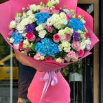 Bu zarif Karışık Buket; hoş kokulu eucalyptus, pufuduk hydrangea, romantik pembe gül ve narin beyaz, pembe ve mor lisianthusların mükemmel uyumu ile bezenmiştir. Buketin içinde 7 adet eucalyptus, 5 adet hydrangea, 9 adet pembe gül ve 7er adet beyaz ve pembe lisianthus ile 5 adet mor lisianthus yer almaktadır. Bu göz alıcı çiçek düzenlemesi, herhangi bir özel günü daha da özel kılacak mükemmel bir hediye seçeneği olacaktır.