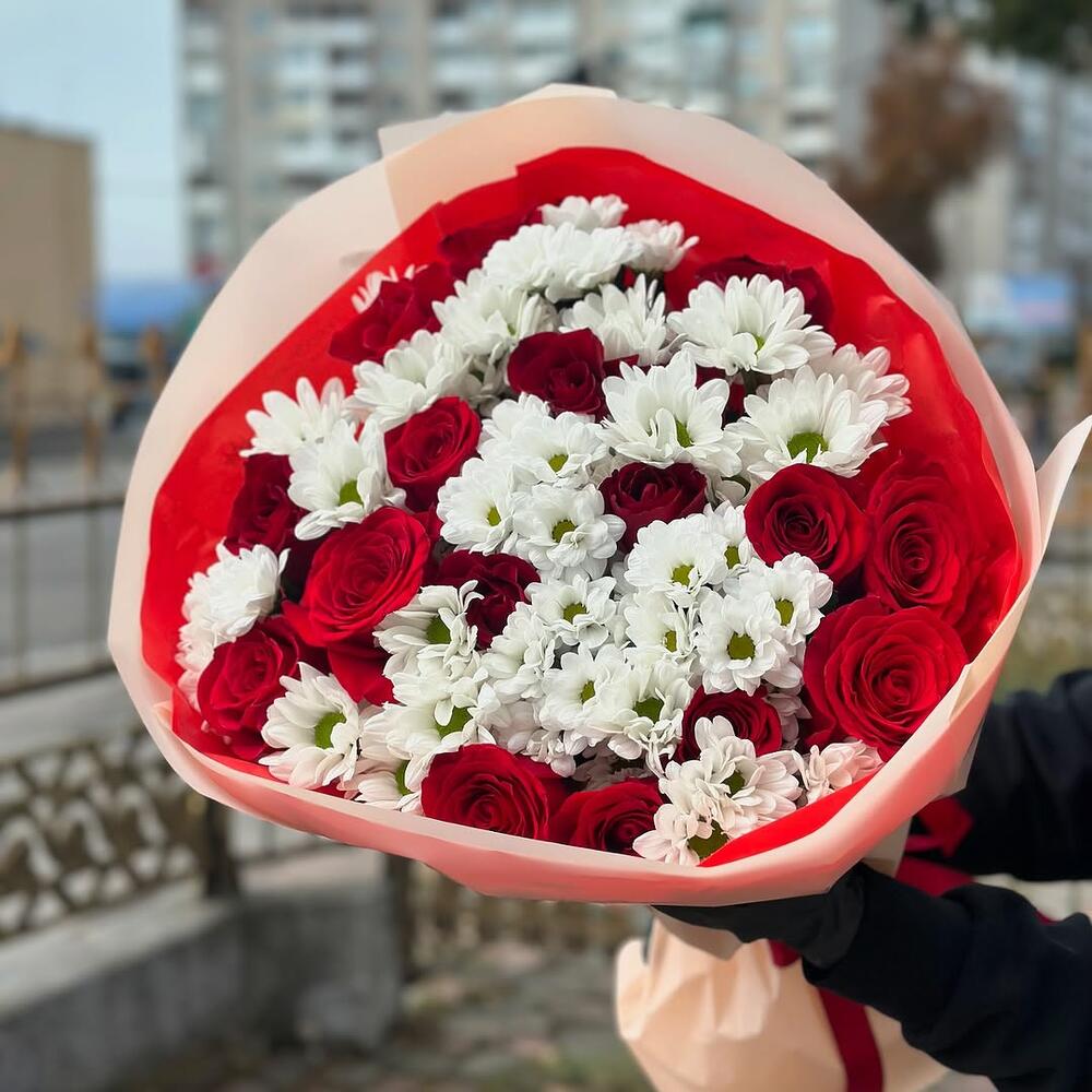 20 adet kırmızı gül ve 8 adet krizantem ile özenle hazırlanmış bu çiçek buketi, sevdiklerinize olan duygularınızı en güzel şekilde ifade eder. Bu zarif buket, hem estetik bir görüntü sunar, hem de mekanlarına ferahlık ve enerji katar. Her bir çiçek, el emeği ile birleştirilmiştir ve içerisinde sevgi barındırır. Sevdiklerinizi bu çiçek buketi ile mutlu edin, çünkü onlar en iyisini hak ediyor.