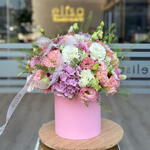 Bu kutuda çiçek aranjmanı, iki adet güzel hydrangea ve 40 adet lisiyantusla birlikte dikkatlice hazırlanmış, beş adet özenle seçilmiş yeşillikle tamamlanmıştır. Bu zarif çiçek düzenlemesi, manzarasını süslemek veya sevdiklerine jest yapmak isteyenler için mükemmeldir. Her bir çiçek seçkin bir şekilde hazırlanıp düzenlenmiştir, bu nedenle düzenleme uzun süre taze ve canlı kalır.