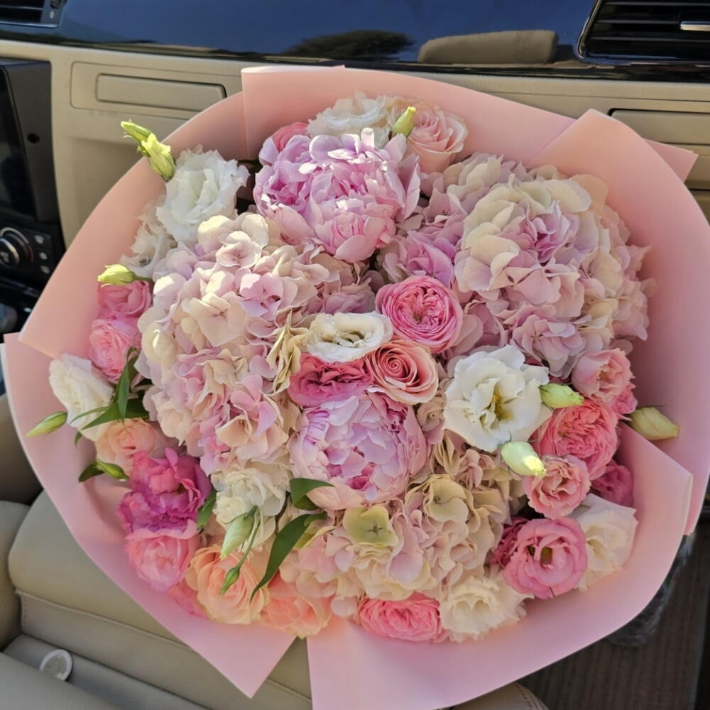 Bu özel Karışık Buket, bir araya getirilen beyaz ve pembe tonların birleşimiyle sofistike ve romantik bir hava yaratıyor. Buket; 7 adet Eustoma, 5 adet beyaz Eustoma, 5 adet şık Peony, 7 adet zarif rosa ve 5 adet hortensiadan oluşmaktadır. Her biri özenle seçilmiş bu çiçekler, onları alan kişiye neşe ve mutluluk getirecek şekilde tasarlanmıştır. Bu muhteşem çiçek buketi ile sevdiklerinize ne kadar değer verdiğinizi ifade edin.