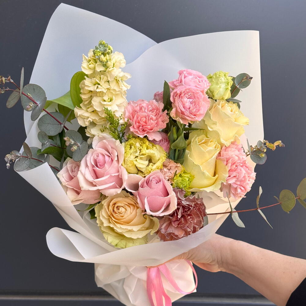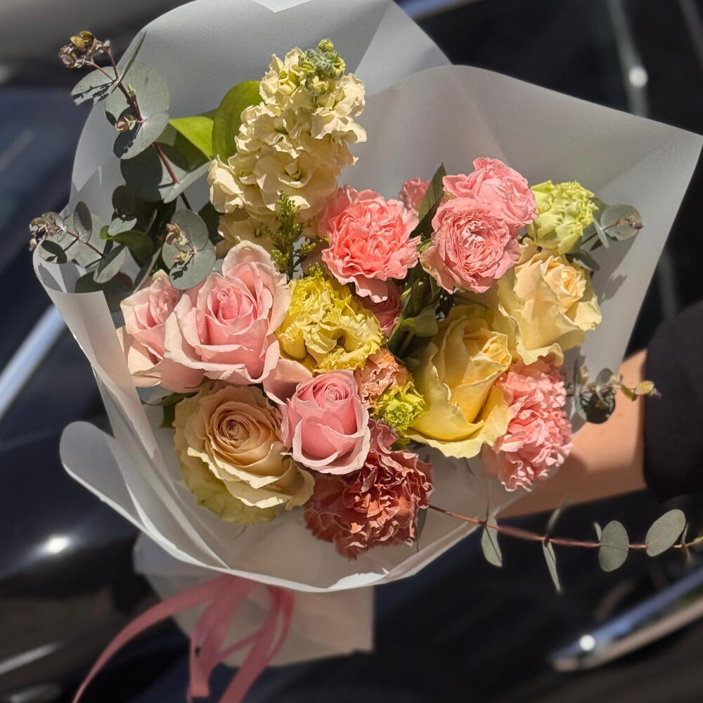 Красивый букет и стильная упаковка 👍🌸Спасибо магазину) всегда ищу стильные идеи. Вы молодцы 😻