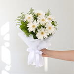 Bu zarif mono buket, içerisinde 7 adet beyaz gerbera bulunmaktadır. Tazeliklerini uzun süre muhafaza edebilme özelliğine sahip beyaz gerberalar, masumiyet ve saflığı temsil etmektedir. Bu buket, sevdiklerinize ne kadar özel olduklarını hissettirecek mükemmel bir hediye olabilir. İçinde bulunduğu her ortamı canlandırmak için ideal bir seçim olan bu beyaz gerbera mono buketi, hem modern hem de klasik mekanlara mükemmel bir şekilde uyum sağlar.