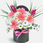 Gerbera - 5 adet yeşiller - 8 adet papatya - 20 adet okaliptus - 8 adet solucan otu - 7 adet