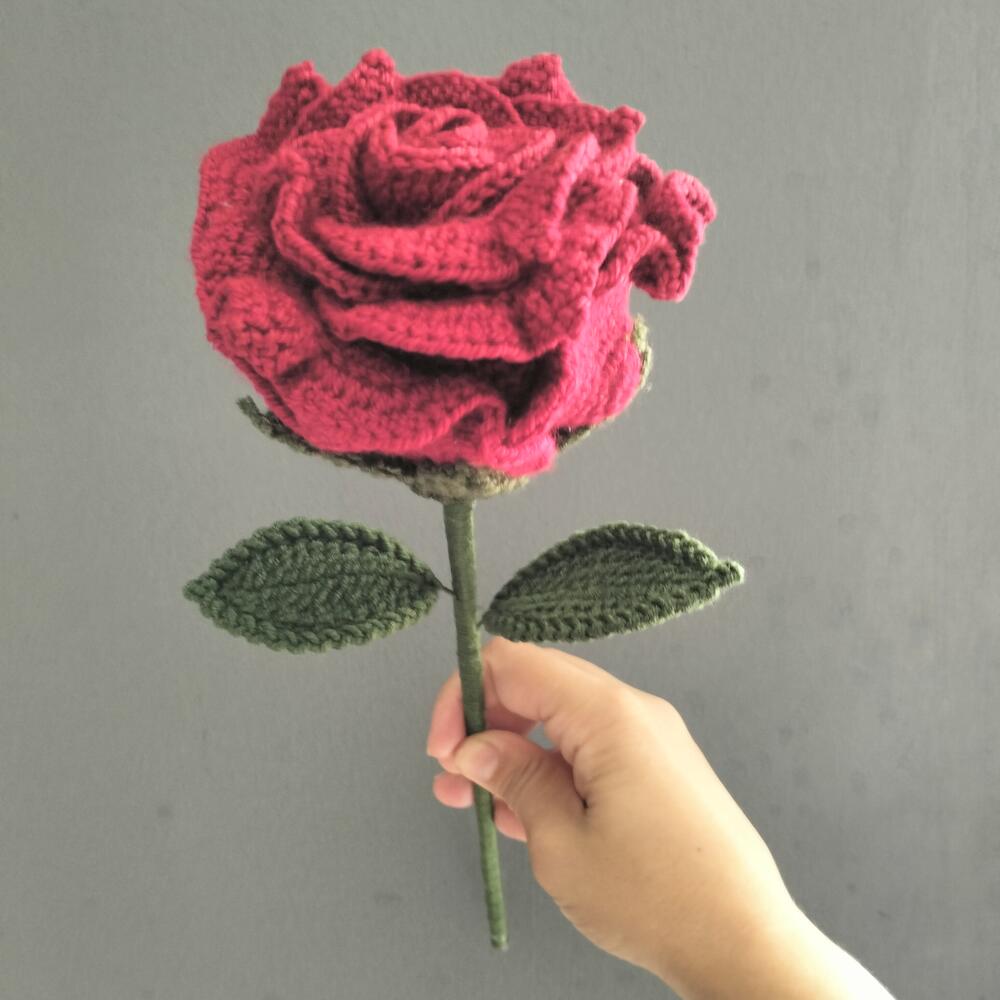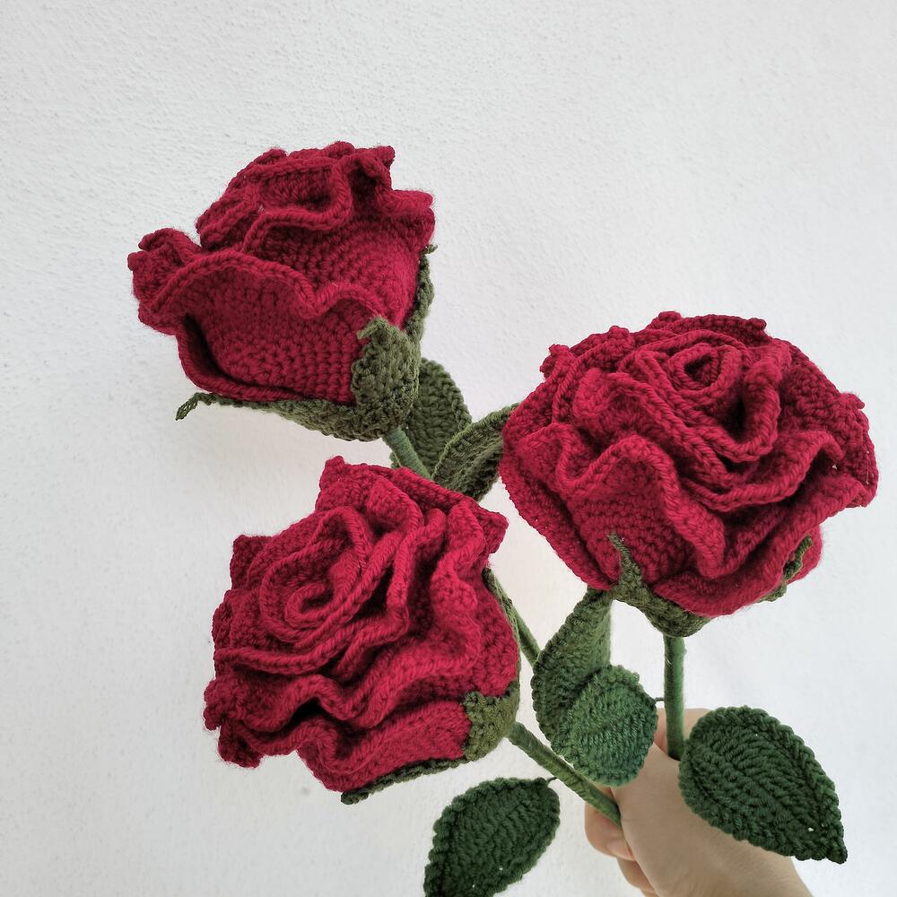 Buy 3 roses and get 1 rose as a gift. Knitted with acrilic and coton yarn. 1 PCS GİANT THAİ ROSE The bouquet will be made and delivered.