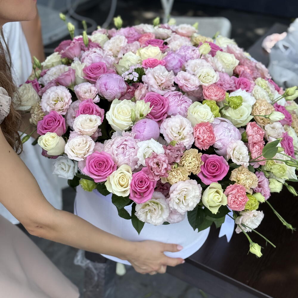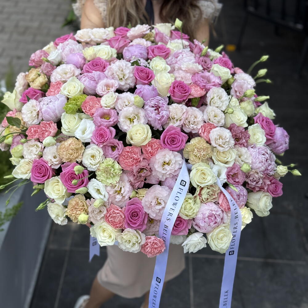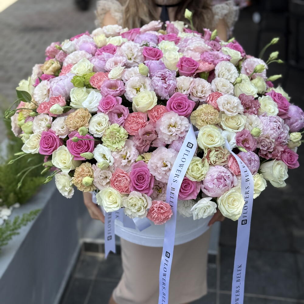 Eustoma - 35 adet peonies pink - 25 adet roses - 101 adet gvazdikai - 25 adet gigantic box - 1 adet