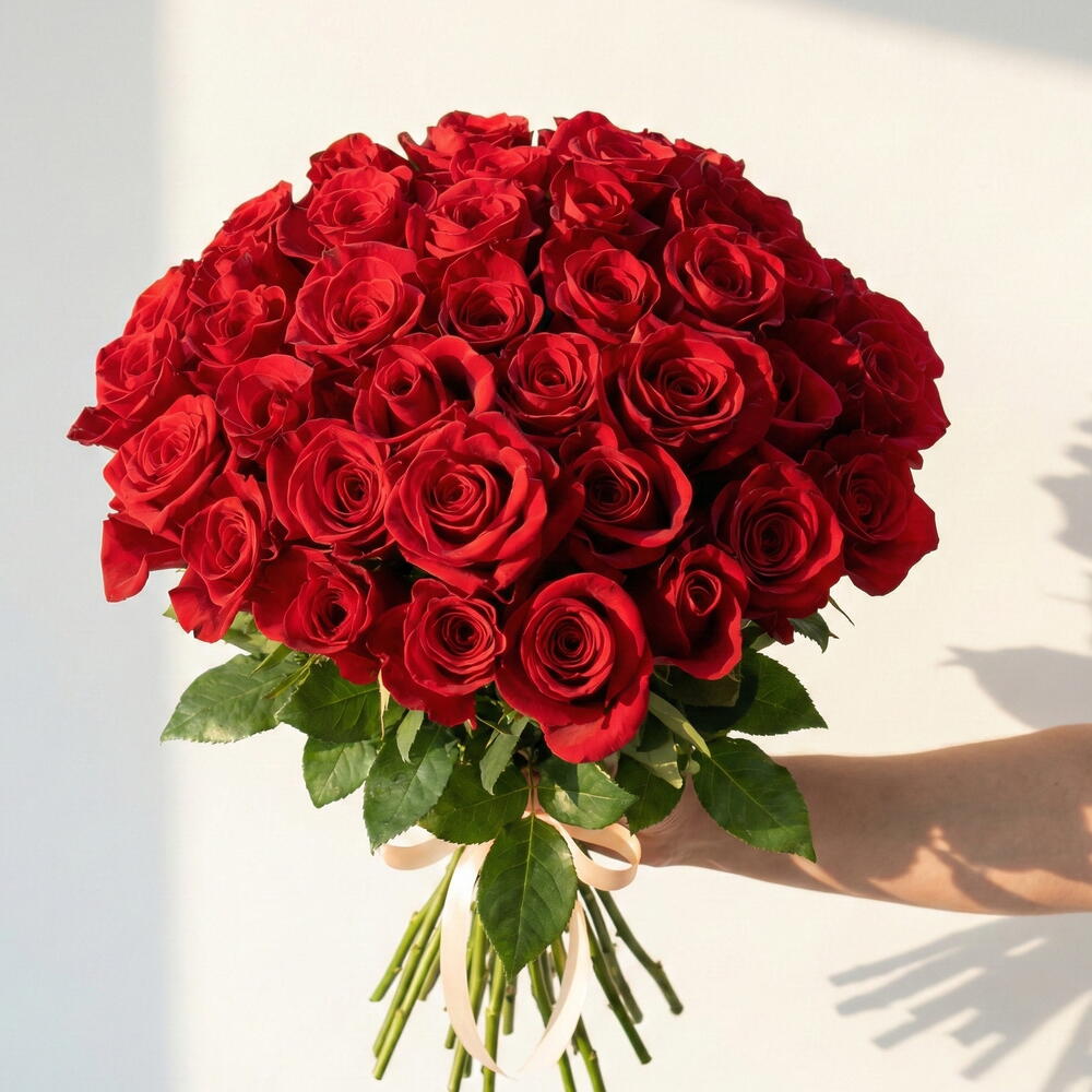Sevginizi en güzel şekilde ifade etmek için hazırlanan 51 kırmızı gülden oluşan bu ihtişamlı buket, aşkın, tutkunun ve zarafetin en güzel yansımasıdır. Romantik bir sürpriz yapmak, sevdiğiniz kişiyi özel hissettirmek veya özel bir günü taçlandırmak için harika bir seçenektir. Bakım Önerileri: Güllerin uzun süre taze kalması için saplarını eğimli şekilde kesin ve temiz, oda sıcaklığındaki suya koyun. Çiçek suyunu her gün değiştirerek solmalarını önleyin. Direk güneş ışığı ve sıcak ortamlardan uzak tutarak daha uzun ömürlü olmasını sağlayabilirsiniz.