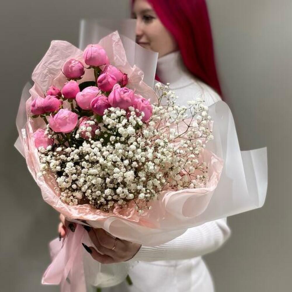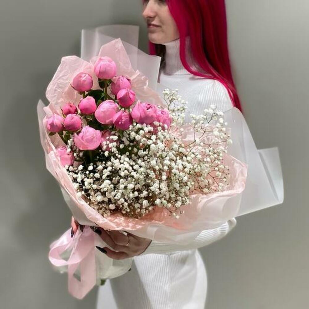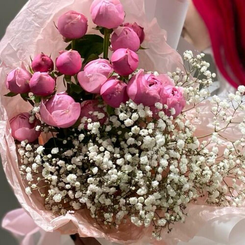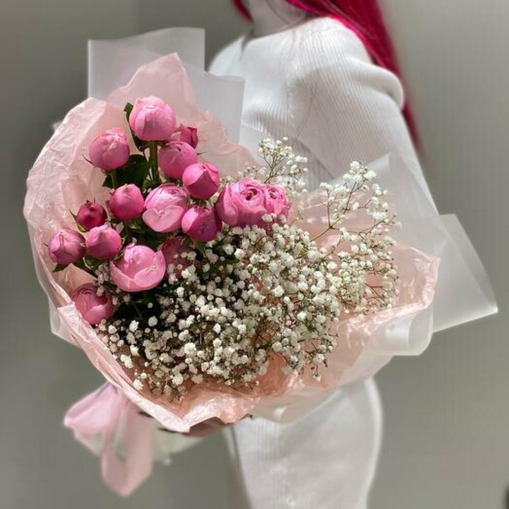 Gypsophila - 2 adet ambalaj - 3 adet silva pembe sprey gül - 3 adet