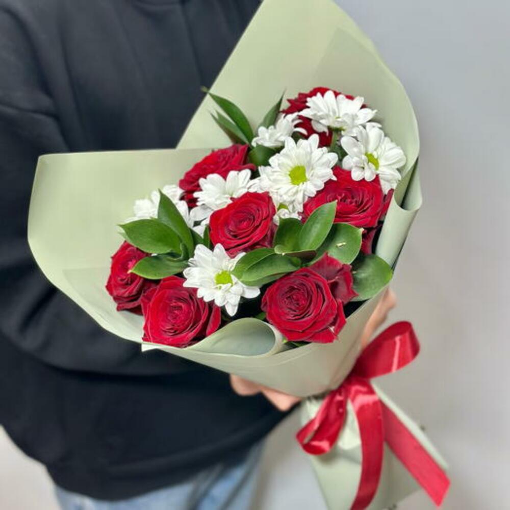 Duygularınızın derinliğini Gül ve Krizantem Buketi ile kutlayın. Bu çarpıcı aranjman, canlı kırmızı güllerin klasik güzelliği ile krizantemlerin zamansız zarafetini bir araya getiriyor. Her bir kırmızı gül aşkı ve tutkuyu simgelerken, krizantemler karmaşık çiçekleriyle zarafet ve çekicilik katıyor. Birlikte, özel birine en derin duygularınızı ifade etmek için mükemmel, sıcaklık ve şefkat yayan bir buket oluştururlar.