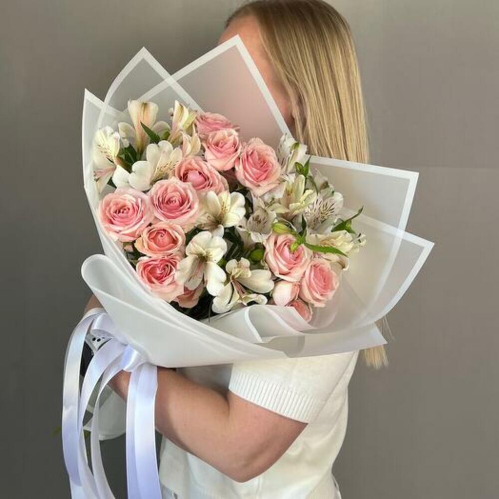 Yumuşak pembeler ve beyazlardan oluşan narin bir senfoni olan bu buket, zarafet ve güzelliğin ön planda olduğu her durum için mükemmeldir. Alstroemerianın bozulmamış beyaz çiçekleriyle iç içe geçmiş pembe güllerin yumuşak allığını içeren bu buket, çiçek aranjmanlarının zamansız cazibesinin bir kanıtıdır. Çiçekler, doğal güzelliklerini daha da artıran ve bu klasik bukete modern bir dokunuş katan bembeyaz tasarım kağıdına ustalıkla sarılmıştır. İster özel bir anı kutluyor olun, ister sadece birinin gününü aydınlatıyor olun, bu buketin kalıcı bir etki bırakacağından emin olabilirsiniz.Alstroemerianın mevsiminde olmadığı durumlarda beyaz gül ile hazırlık sağlanmaktadır.