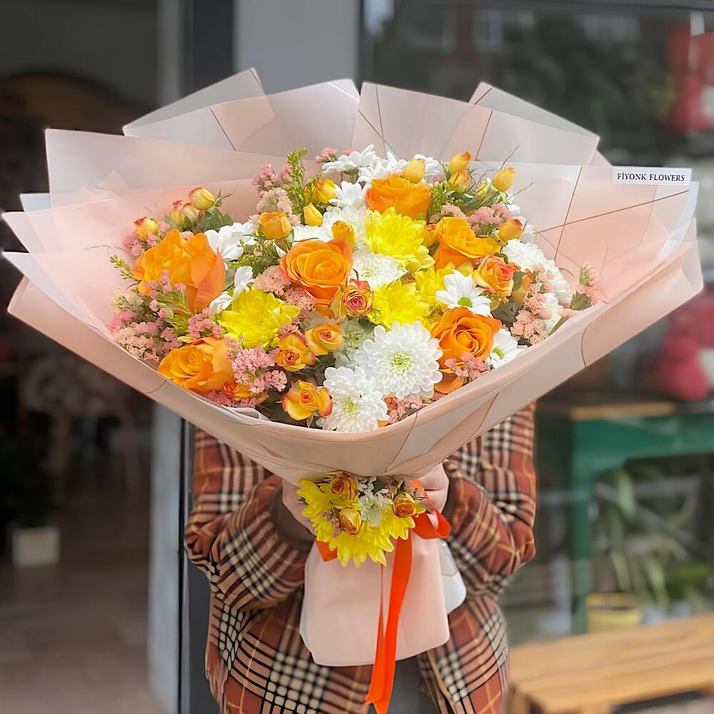 Enerji veren renkleriyle Güneş Işıltısı Buketi, sıcaklık ve mutluluğun en güzel temsilidir. Sarı ve turuncu tonlarının uyumuyla göz kamaştıran bu özel buket, sevdiklerinize neşe ve pozitif enerji katacak.