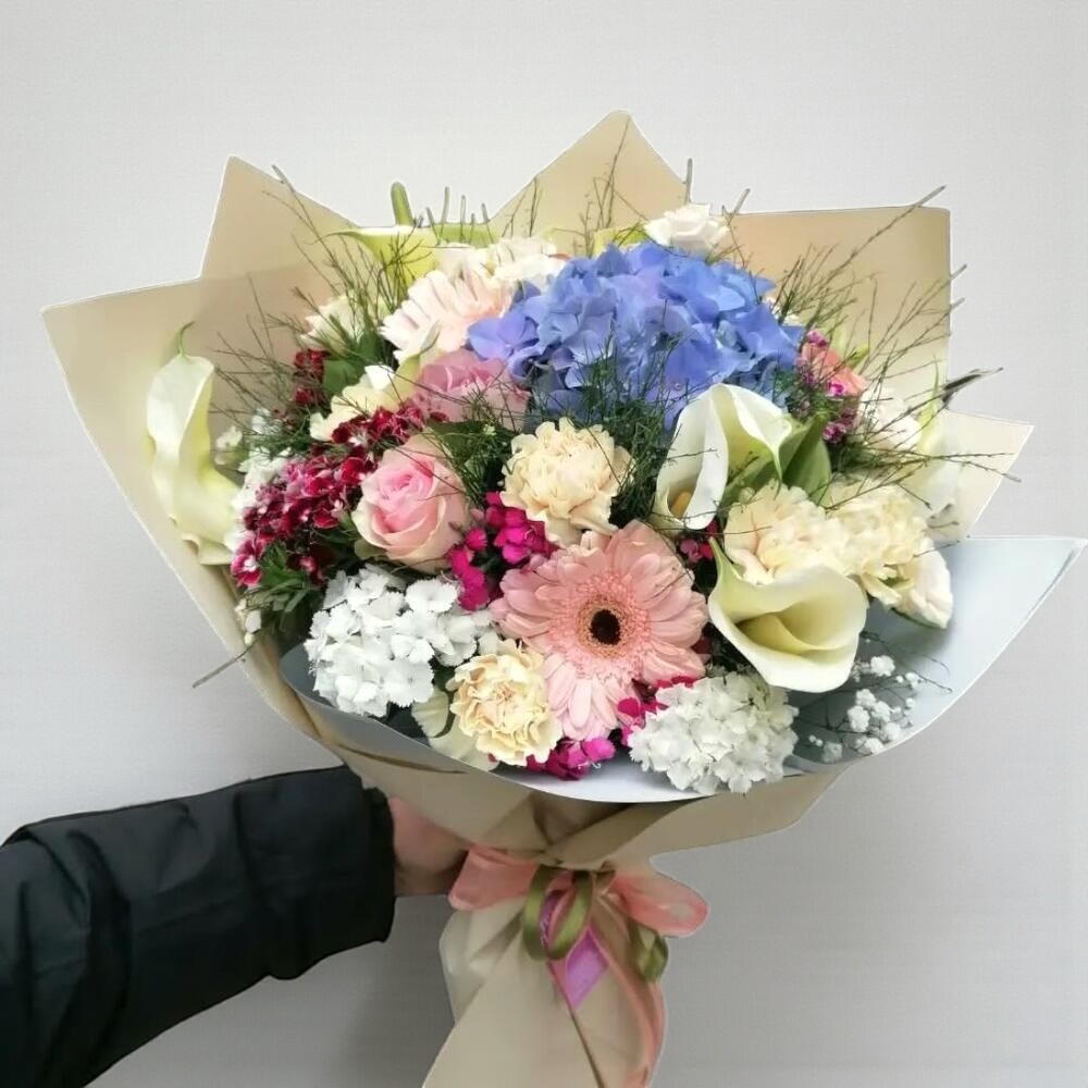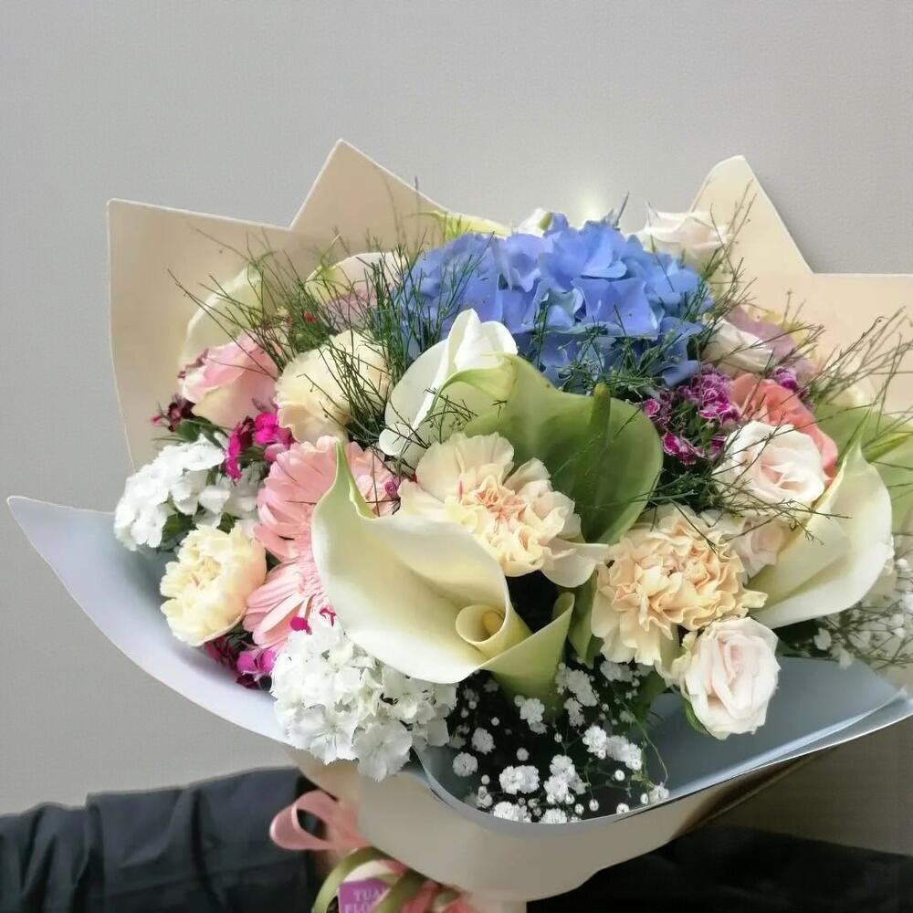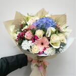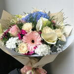 Zarif bir güzellikteki bu çiçek buketi, yumuşak renk tonları ve şık düzenlemesiyle dikkat çekiyor. Buket, beyaz zambaklar, mor orkide, pembe gerbera, beyaz çiçekler ve krem karanfillerin zarif birleşiminden oluşuyor. Canlı renklerin ve ince detayların harmanı, odanıza zarif bir dokunuş katacak. Buket, aynı zamanda duygusal bir hediye arayanlar için mükemmel bir seçenek. Yumuşak yapılı çiçeklerin düzeni, zarif bir şıklık yaratıyor. Buketinizi uzun süre taze tutmak için, suyun her gün değiştirilmesi ve doğrudan güneş ışığından kaçınılması önemlidir.