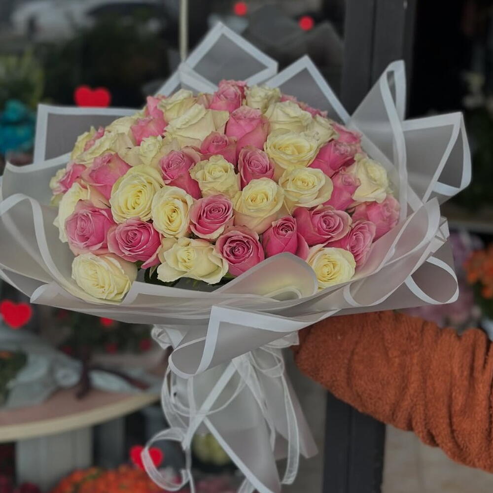 Bu romantik ve hassas çiçek düzenlemesi, 24 adet zarif pembe gül ve 22 adet saf beyaz gül içeriyor. Her biri ustaca seçilmiş ve düzenlenmiş bu güller, herhangi bir özel günü daha da özel hale getirecek. Pembe gülün nazik tonları ve beyaz gülün saflığı, hediye sahibine neşe, sevgi ve hayranlık ifade eder. Bu şık çiçek aranjmanı, onu alan kişiye ne kadar önemli olduğunu göstermenin mükemmel bir yolu olacaktır.