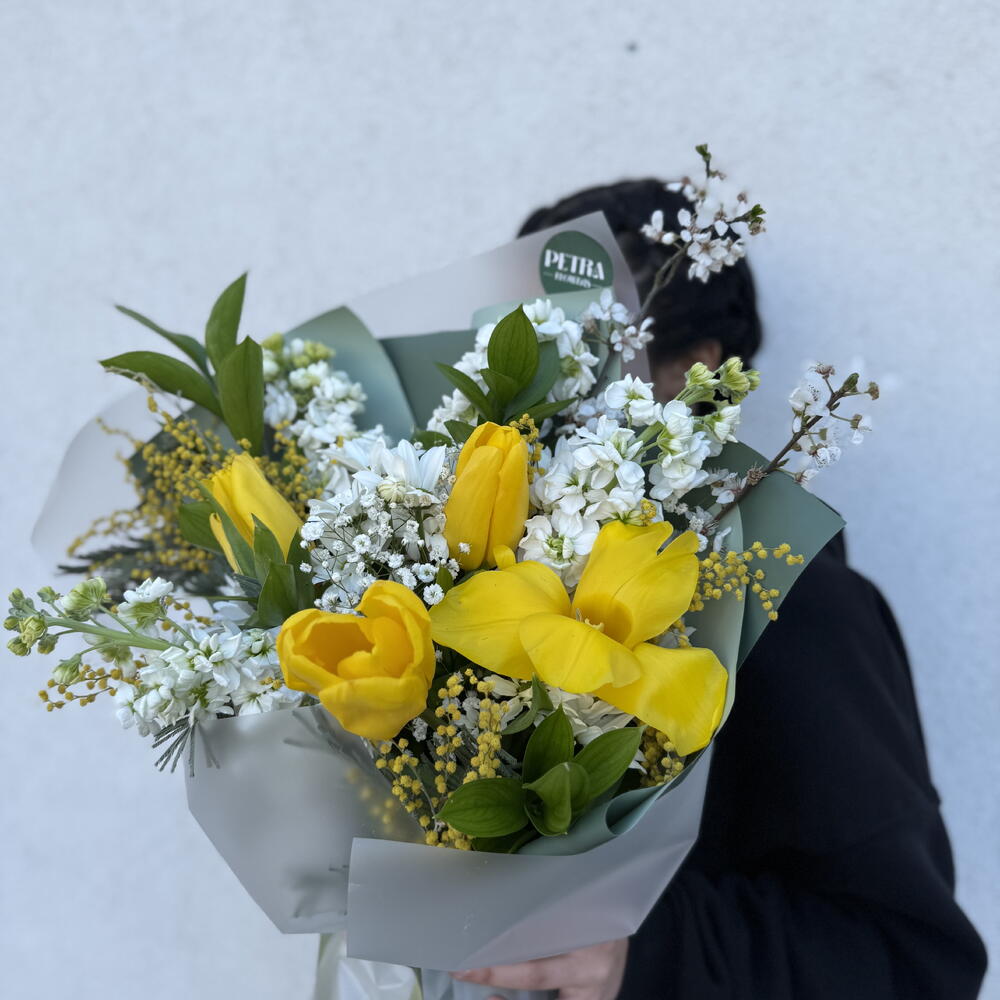 Haftalık taze çiçeklerle tasarımcının oluşturduğu buket