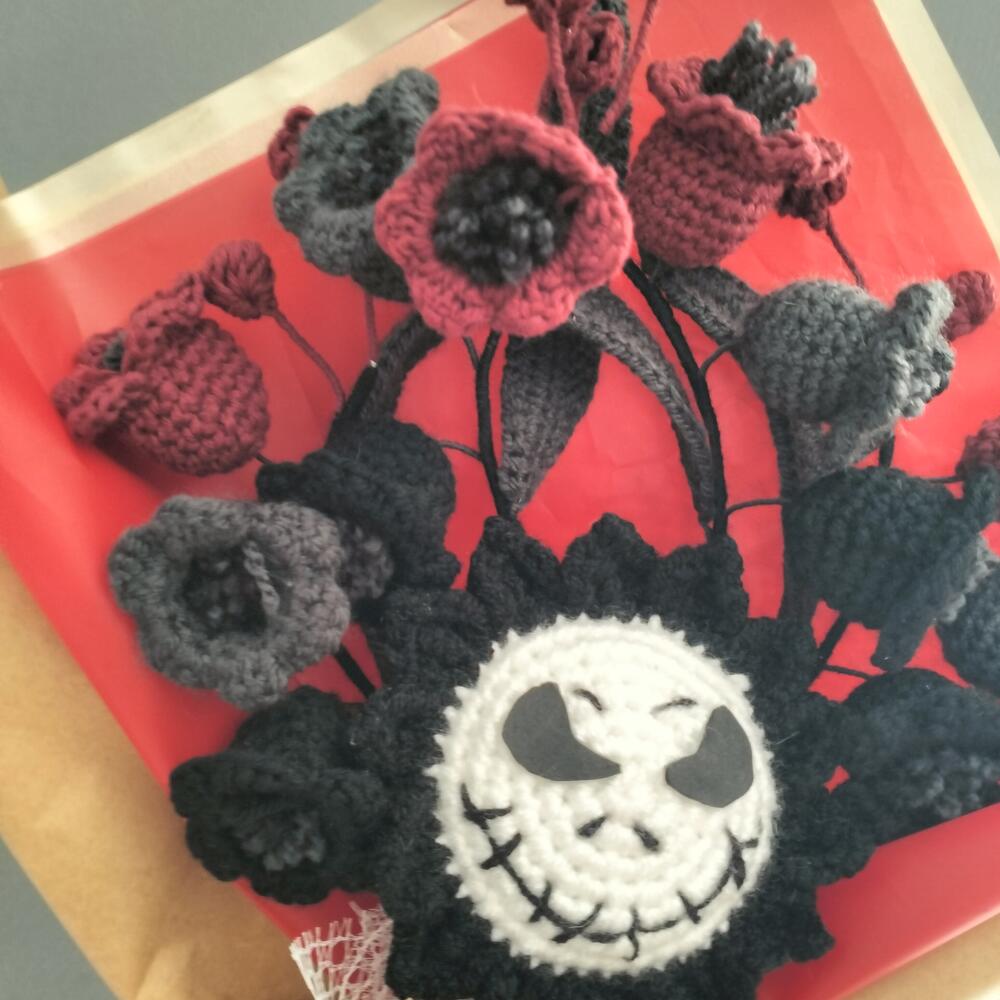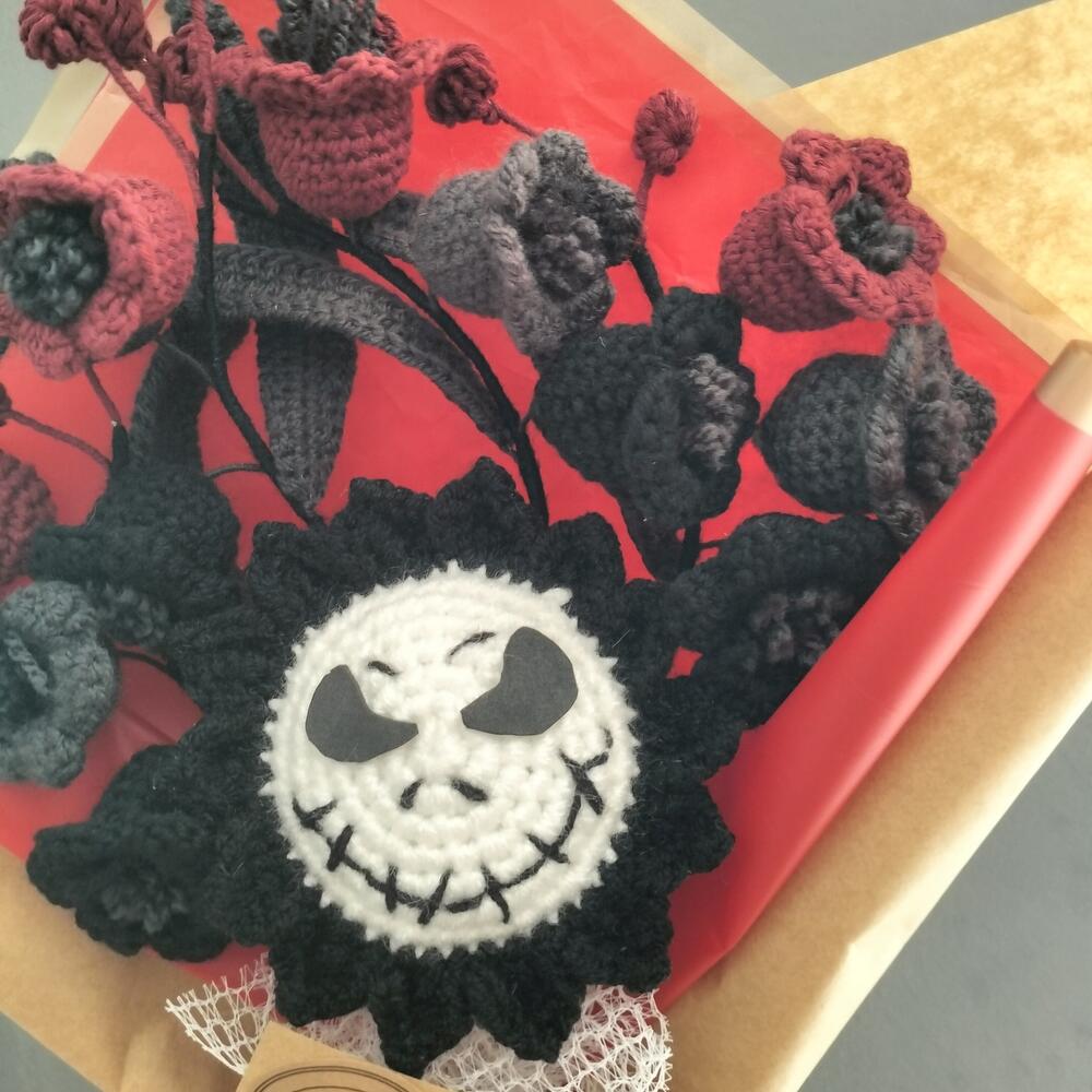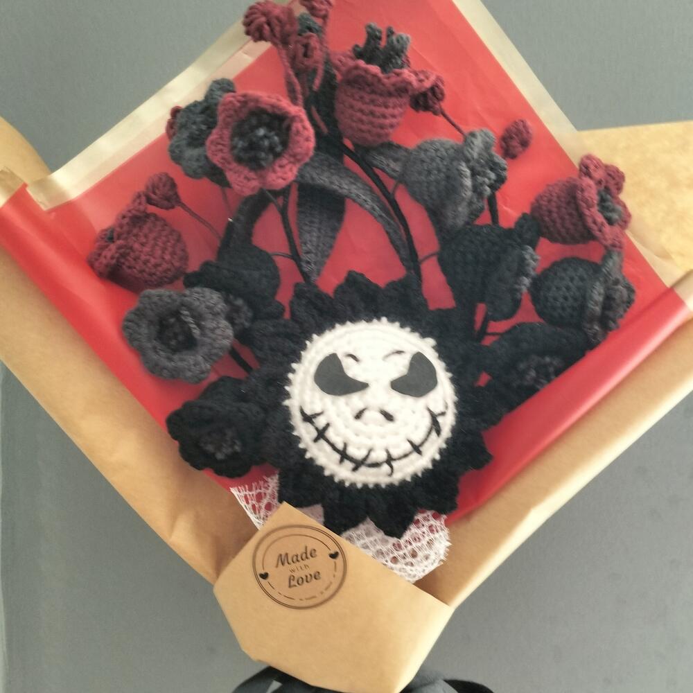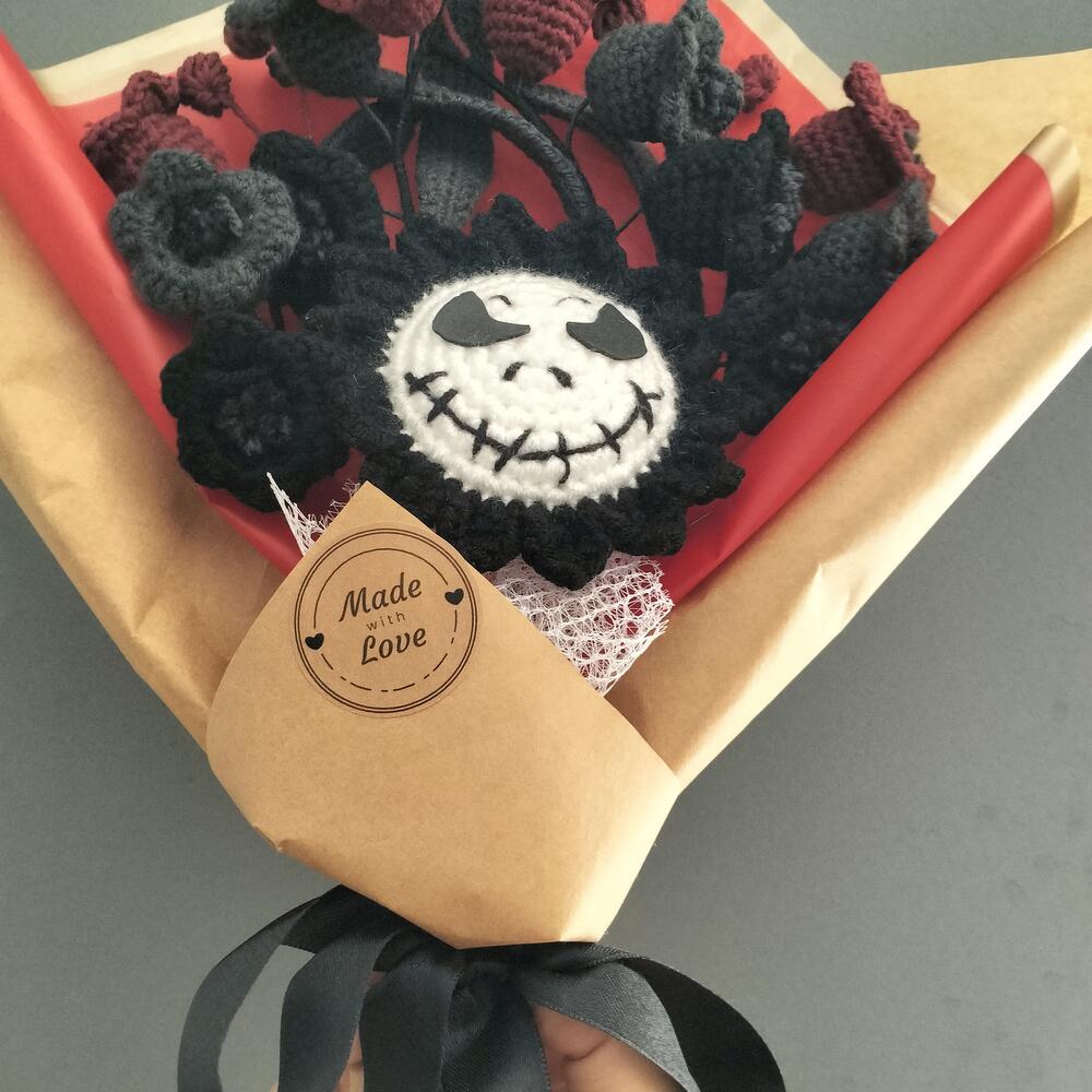 Knitted with acrilic yarn. İn the BOUQUET 1 PCS monster sunflower 4 PCS dark LİLY of Valley branch