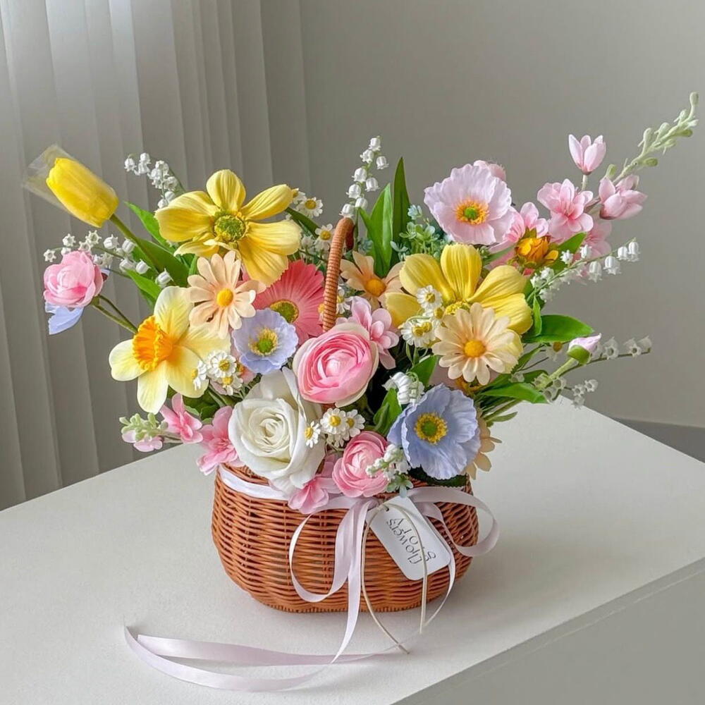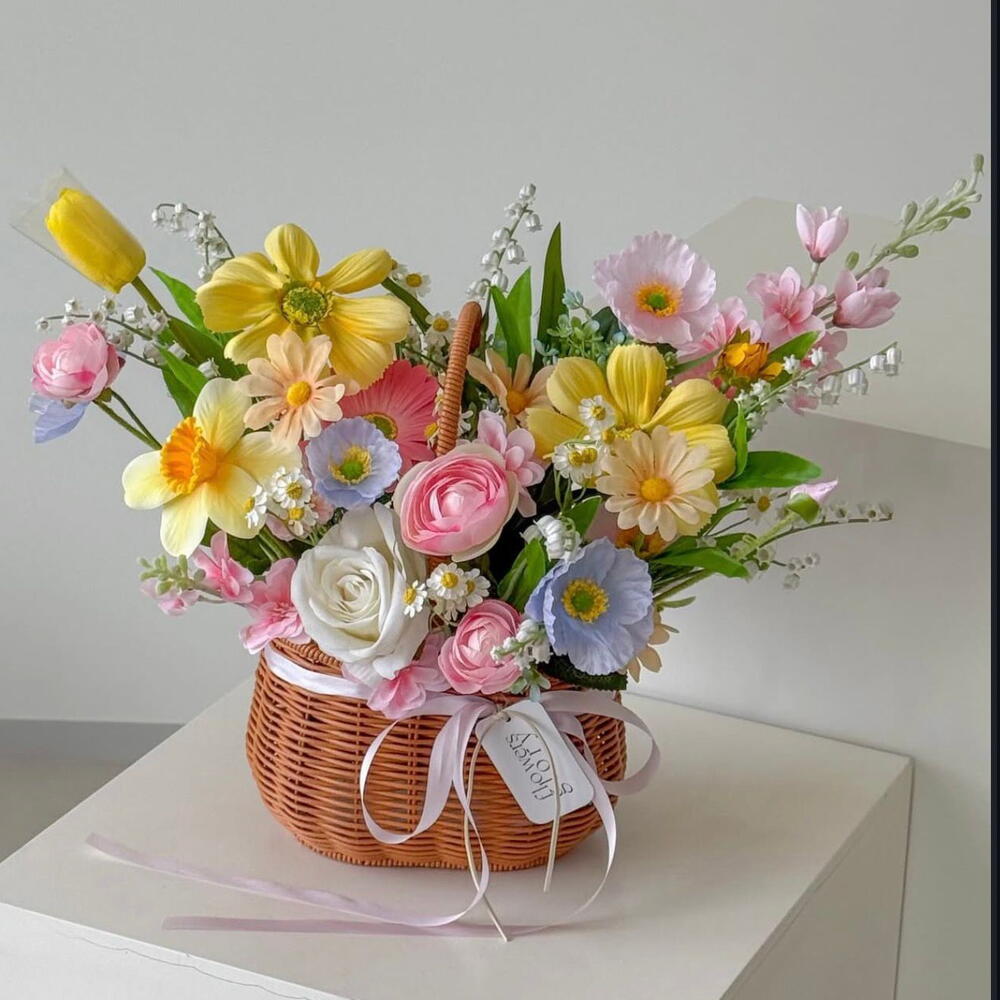 Baharın tazeliğini yansıtan renkli çiçeklerin uyumlu birlikteliği, hasır sepet içinde sıcak ve doğal bir şıklık sunar. Yumuşak renk geçişleri ve dengeli yerleşim, aranjmana ferah ve zarif bir görünüm kazandırır. (yapay) Yüksek kaliteli yapay çiçeklerden hazırlanan bu tasarım, solmayan güzelliğiyle anıları kalıcı hale getirir ve uzun süre ilk günkü formunu korur. Doğallık, zarafet ve kalıcı hatıraları bir araya getiren Hasır Sepette Bahar Buketi, içten gelen duyguları zamansız bir şıklıkla ifade etmek için tasarlandı.