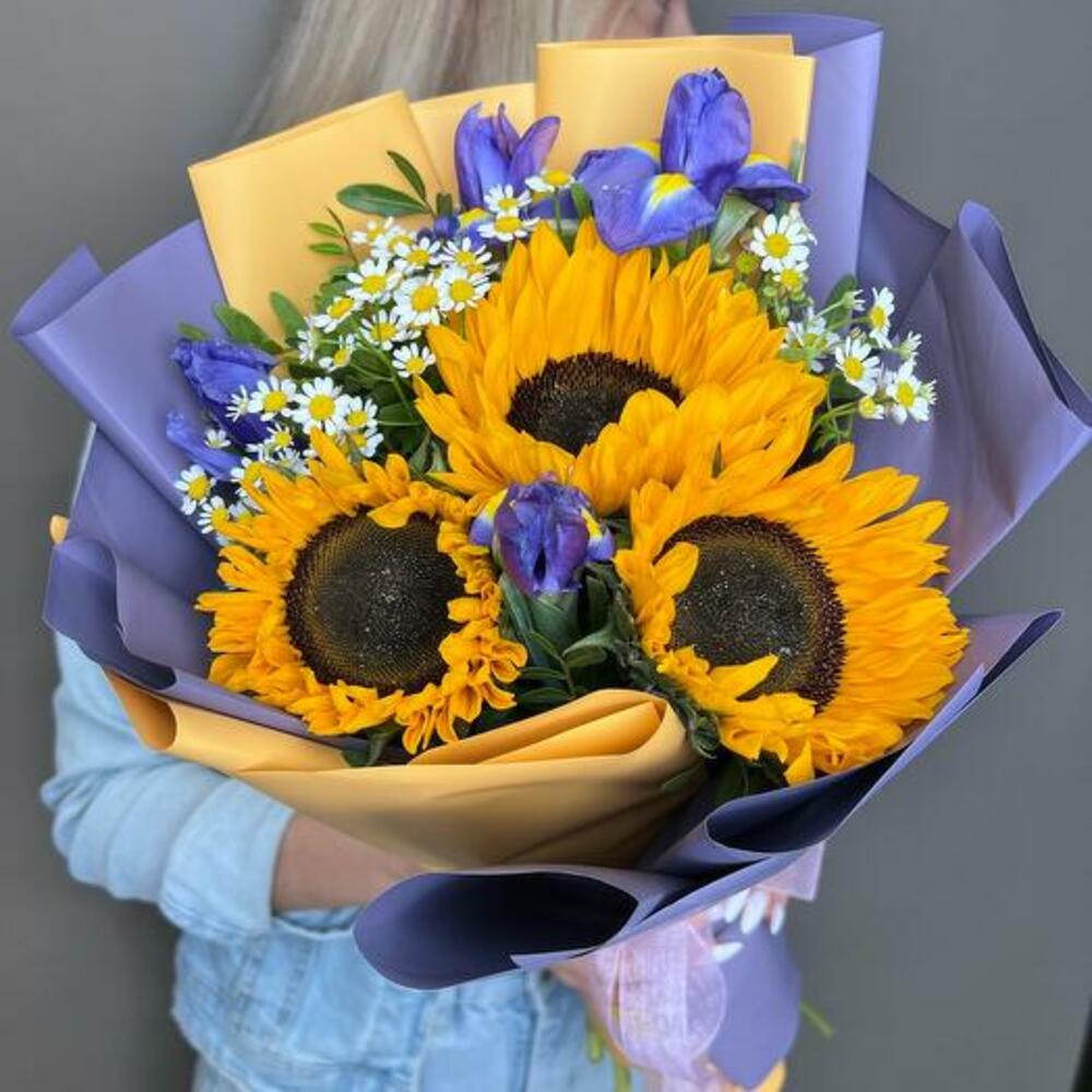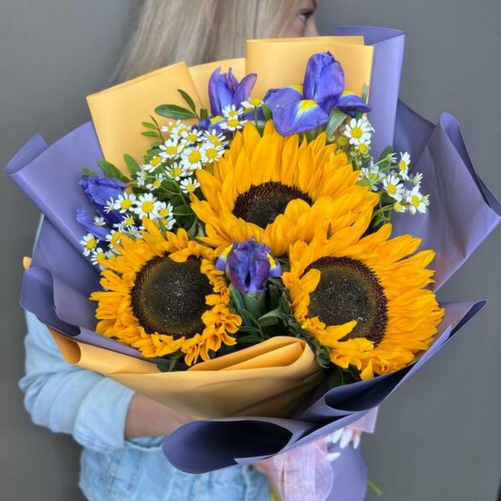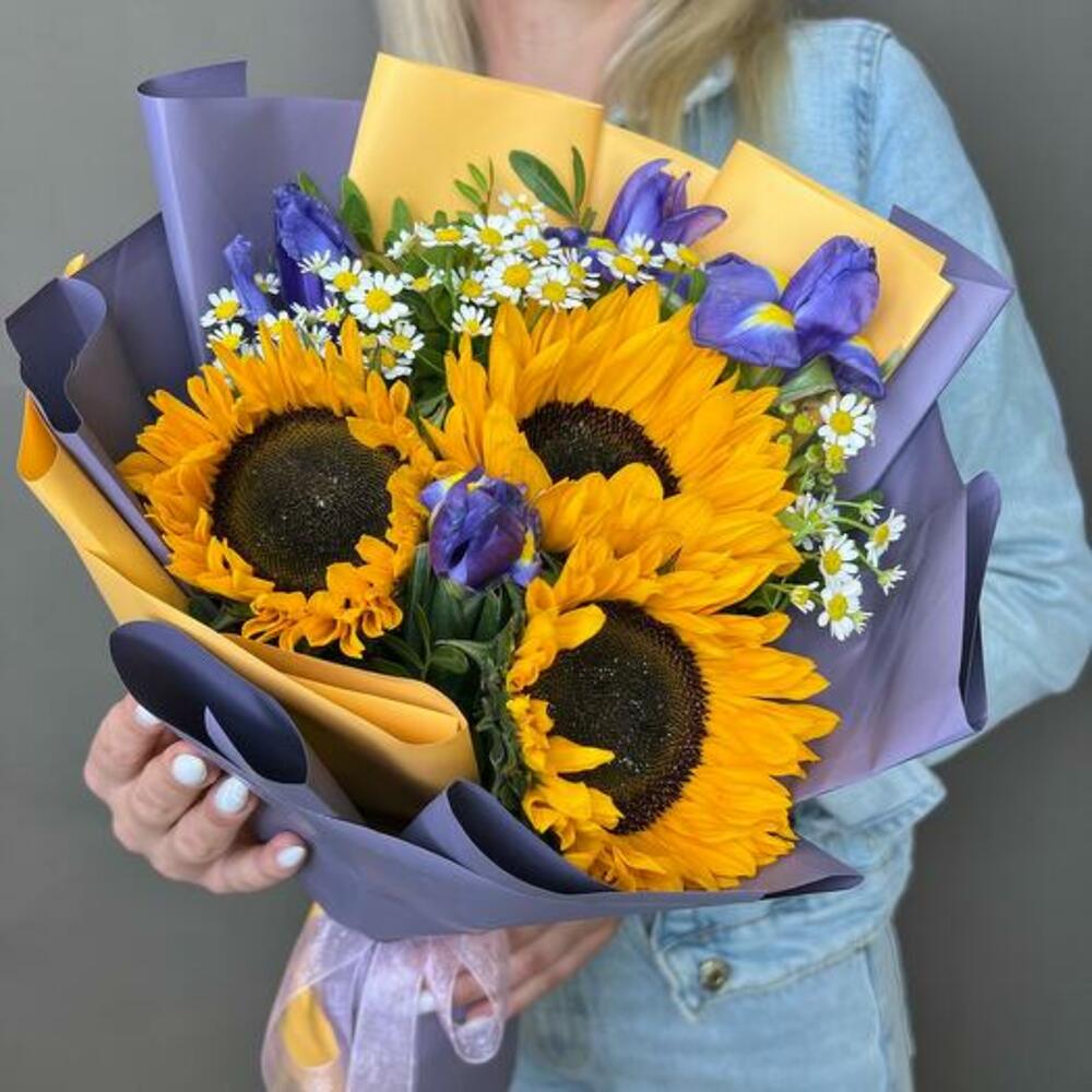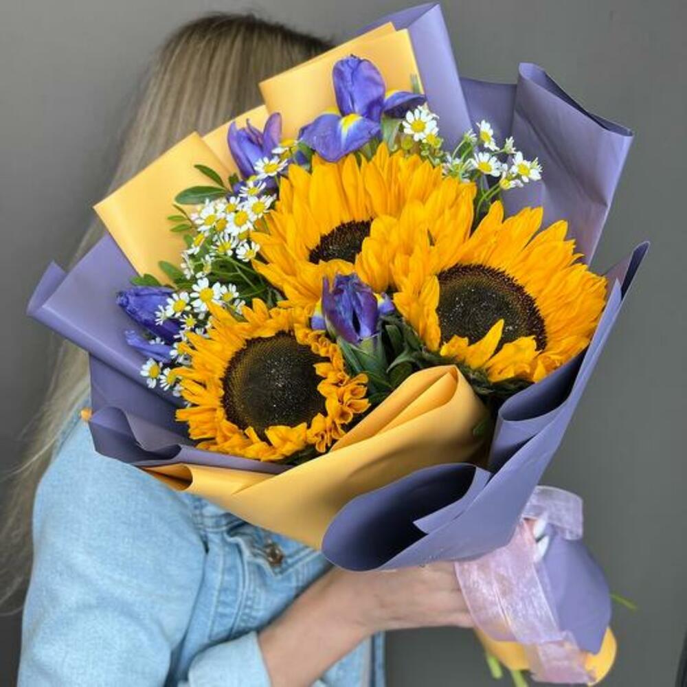 İris ve Ayçiçeği Buketi