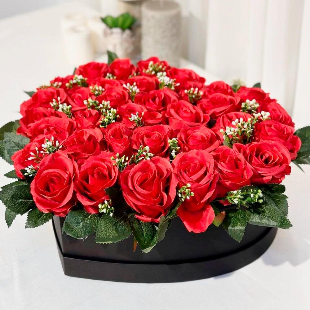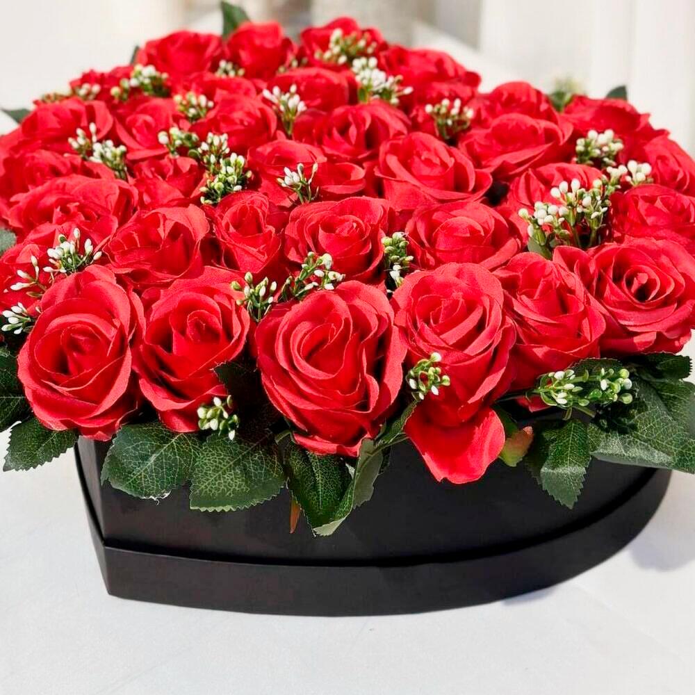 kutuda kırmızı gül - 55 adet kutuda kırmızı gül aranjmanı - 1 adet