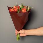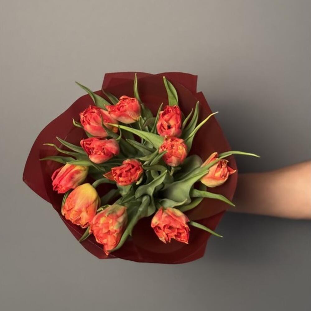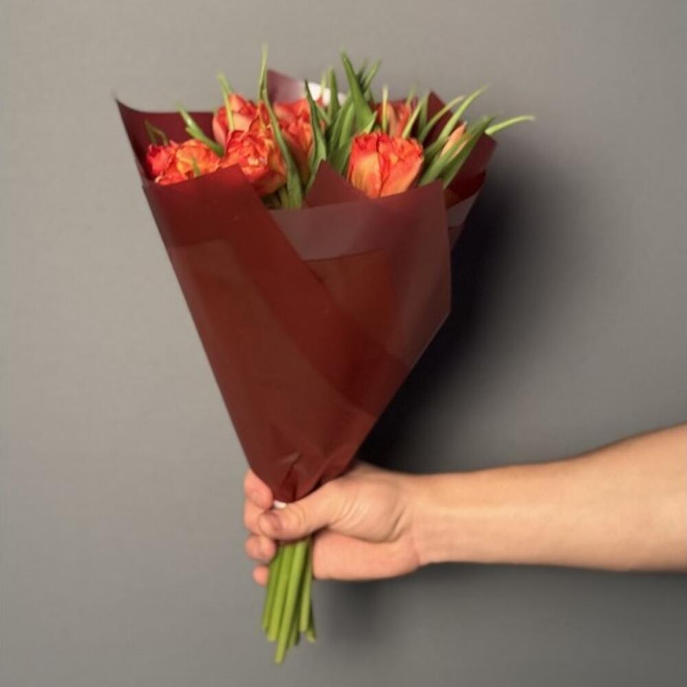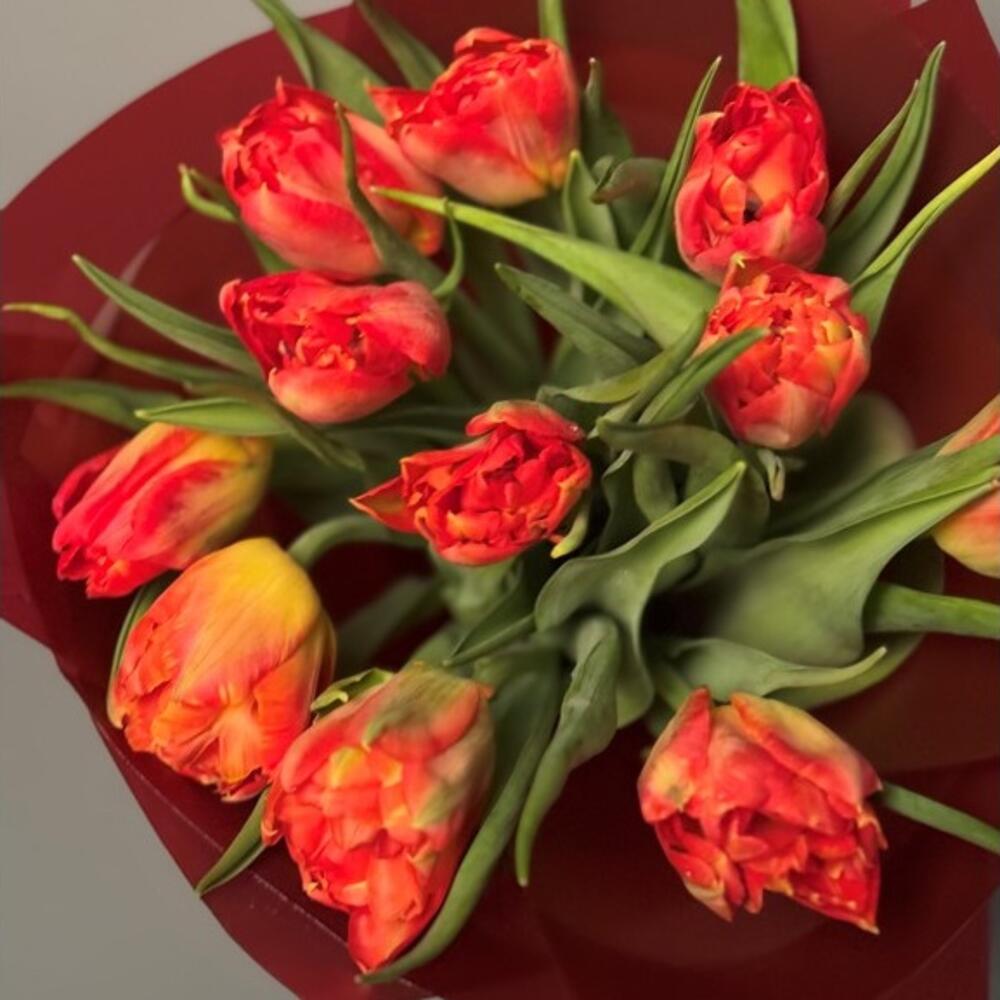 Bu göz kamaştırıcı buket, zarif kırmızı-sarı tonlardaki lale çiçekleriyle sevdiklerinize sıcak bir sevgi mesajı taşıyor. Kırmızı ambalajı ve doğal yeşilliklerle çevrili laleler, zarif ve şık bir görünüm oluşturur. Canlı renkleriyle enerjik, tutkulu ve samimi bir his uyandıran bu buket, doğum günü, yıldönümü ya da sıradan bir günü unutulmaz kılmak için mükemmel bir tercihtir. Buketin doğal görünümü ve yalın şıklığı, sadeliği sevenler için idealdir. Uzun süre taze kalması için doğrudan güneş ışığı almayan serin bir ortamda saklanması tavsiye edilir. Sap kısımları suya temas edecek şekilde yerleştirilmeli ve suyu 2-3 günde bir yenilenmelidir.