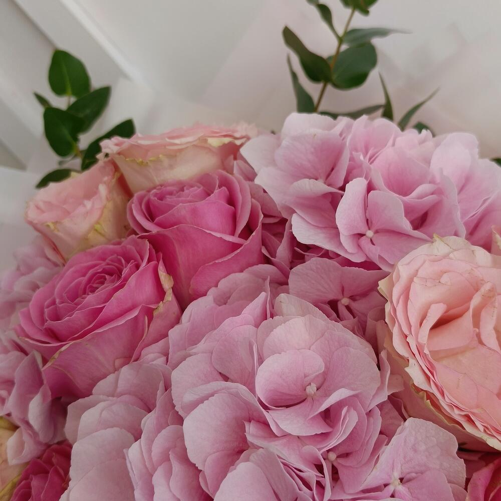 gül - 15 adet okaliptüs - 9 adet not kartı - 1 adet ortanca (hydrangea macrophylla) - 3 adet