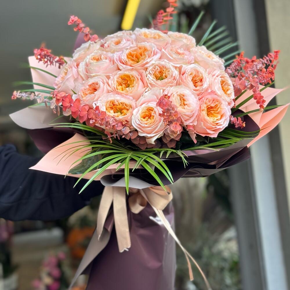 Zarafetin ve romantizmin en özel hali… Juliet şeftali tonlarındaki garden güllerle hazırlanan bu büyüleyici buket, doğal yapraklar ve zarif pembe ambalajla tamamlanarak göz alıcı bir bütünlük sunuyor. Düğün, doğum günü, yıldönümü ya da Sevgililer Günü için en şık hediye alternatifi olan bu özel aranjman; masumiyetin, sevginin ve zarafetin sembolü. Sevdiklerinize unutulmaz bir sürpriz yapmak istiyorsanız Juliet Garden Gül Buketi tam size göre!