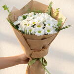 Kahverengi Ambalaj Kağıdında Beyaz Papatya Buketi
