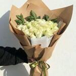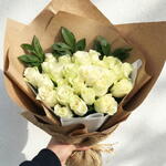 Kahverengi Ambalaj Kağıdında 21 Beyaz Gul Buketi