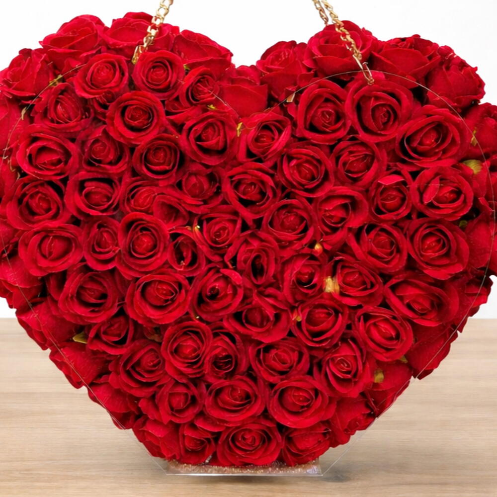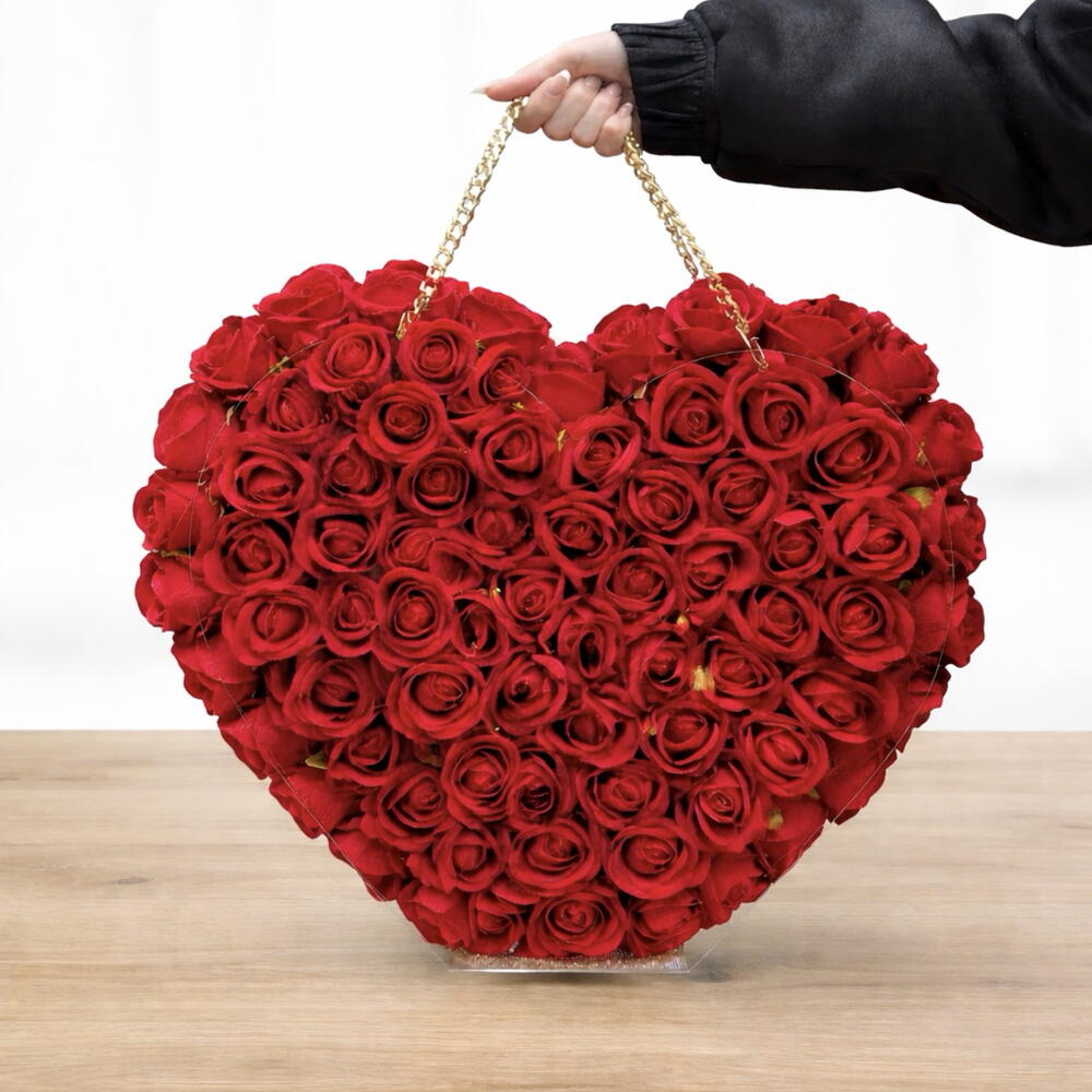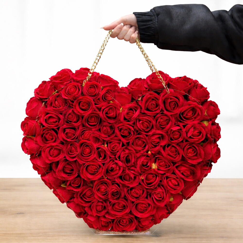 Yoğun ve etkileyici kırmızı güllerle hazırlanan kalp şeklindeki bu özel tasarım, romantik ve lüks bir hediye arayanlar için tasarlanmıştır. Modern çanta formu ve altın zincir detayı ile klasik buketlerden çok daha farklı ve gösterişli bir görünüm sunar. Sevgililer günü, yıldönümü, doğum günü veya unutulmaz bir sürpriz için mükemmel bir seçimdir. Antalya Lara’da Ekinci Çiçekçilik tarafından özenle hazırlanır ve aynı gün teslim edilir.