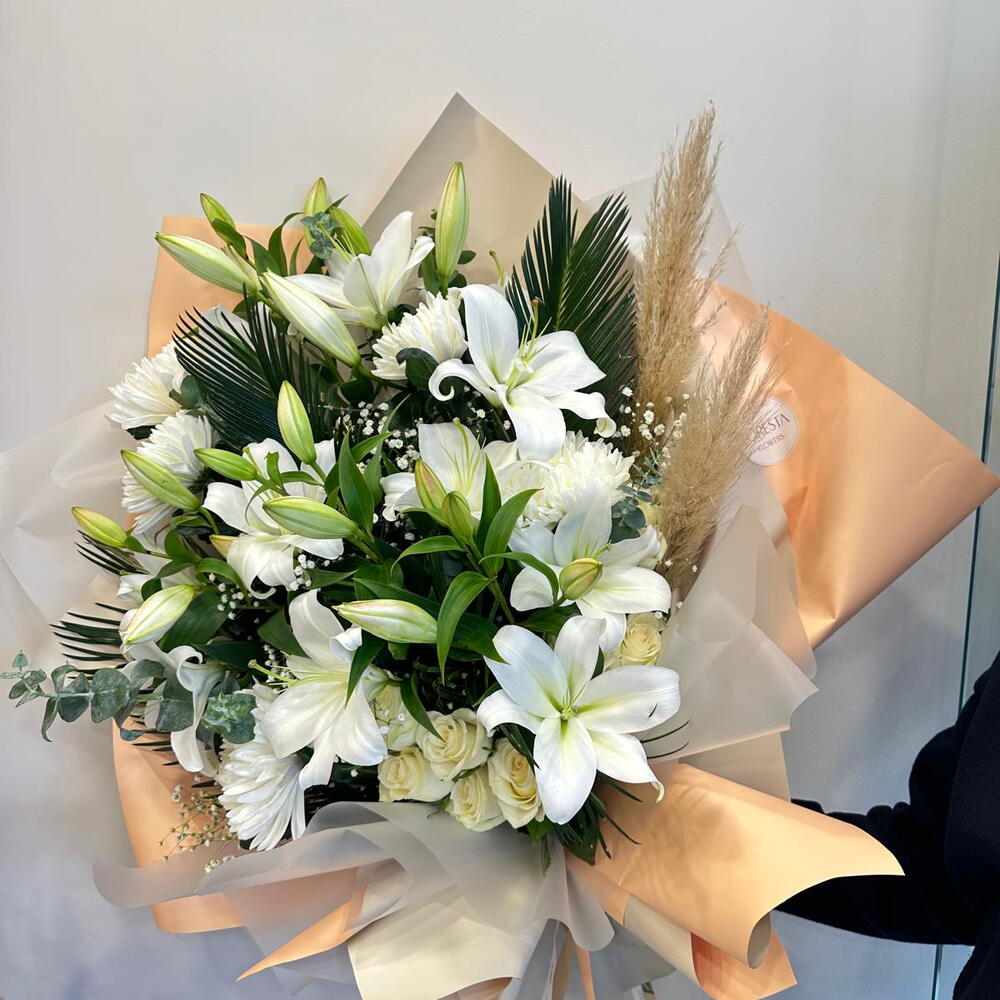 Bu büyüleyici çiçek buketi, Lilyum ve Anastasia ile hazırlanmıştır. Bu özel tasarım, çiçeklerin zarif ve naif dokunuşlarıyla bir araya gelir. Eve gelen misafirlerinizin veya sevdiklerinizin kalbini ısıtacak, her ortama canlılık katabilecek bu çiçek buketi ile hayatınıza renk katın. Her biri özenle seçilmiş ve dizayn edilmiş bu çiçekler, salonunuzu, iş yerinizi veya herhangi bir odayı güzelleştirecektir. Bir adet Lilyum ve Anastasia çiçeğinin zarif uyumu, çiçek buketine özgün ve çekici bir görünüm kazandıracaktır.