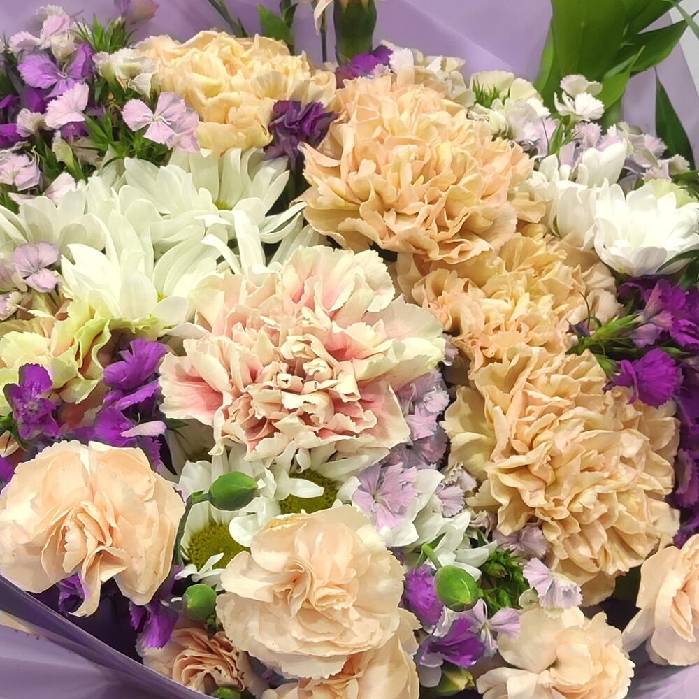 ambalaj - 5 adet hüsnü yusuf - 4 adet papatya demet - 4 adet yeşillik ruskus - 4 adet renkli karanfiller - 10 adet