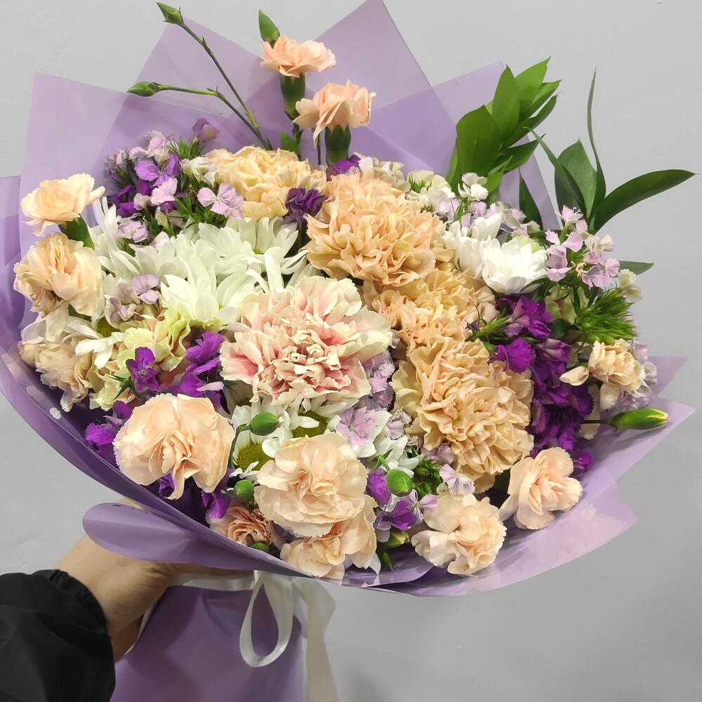 Bu göz alıcı mono buket, beş adet ambalajın hem zarif hem de dayanıklı bir paketle çevrelendiği bir hediye seçeneğidir. İçinde dört adet hüsnü yusuf ve onar adet papatya demeti bulunur. Her demet, doygun renklerle dört adet yeşillik ruskus ve on adet çeşitli renklerde karanfillerle süslenmiştir. Bu çarpıcı çiçek aranjmanı, ister özel bir gün için, ister sadece birinin gününü aydınlatmak için mükemmel bir seçimdir. El yapımı bu mono buket, herhangi bir dilek ya da kutlama için ideal bir hediye olacaktır.