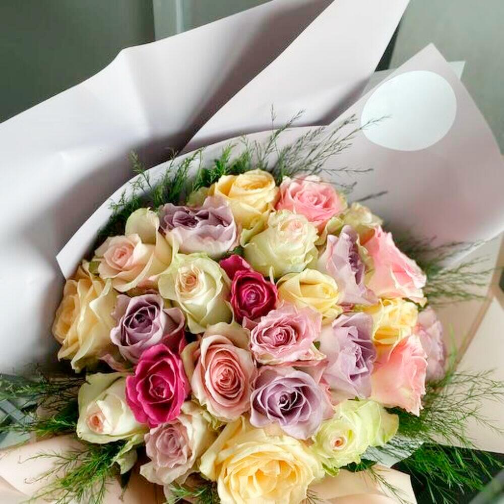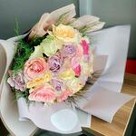 Bu zarif ve romantik buket, pastel tonlardaki 30 adet gülün büyüleyici güzelliğini gözler önüne seriyor. Pembe, lila, krem ve fildişi tonlarının muhteşem uyumuyla tasarlanan bu buket, her özel anınızı unutulmaz kılmak için mükemmel bir seçenektir. Dekoratif yeşilliklerle tamamlanan aranjman, doğallık ve zarafet sunarak hem klasik hem de modern bir dokunuş sağlıyor. Buketin tazeliğini korumak için doğrudan güneş ışığından uzak tutulmalı, saplar düzenli olarak çapraz şekilde kesilmeli ve su her gün yenilenmelidir. Serin bir ortamda muhafaza edildiğinde uzun süre canlılığını koruyacaktır. Sevginizi en zarif şekilde ifade edebileceğiniz bu buket, sevdiklerinizi mutlu etmek için harika bir tercihtir.