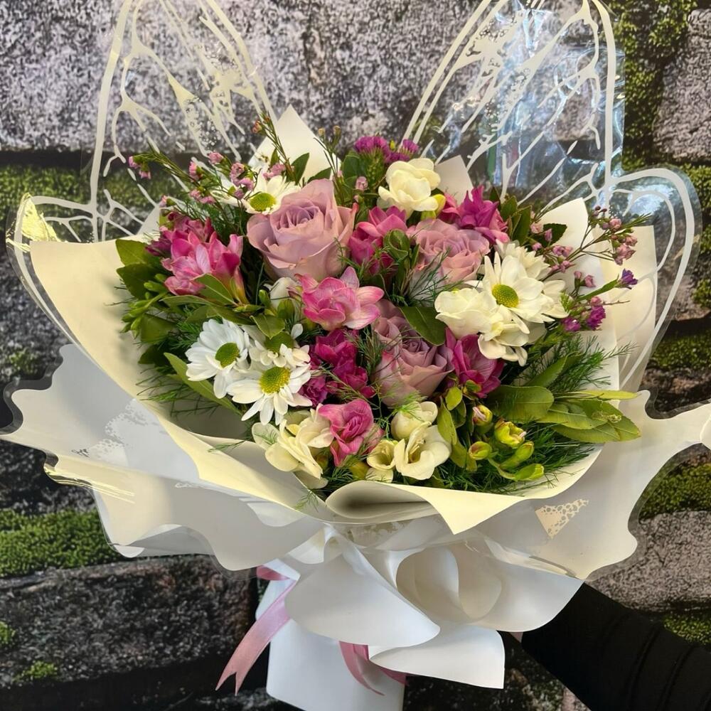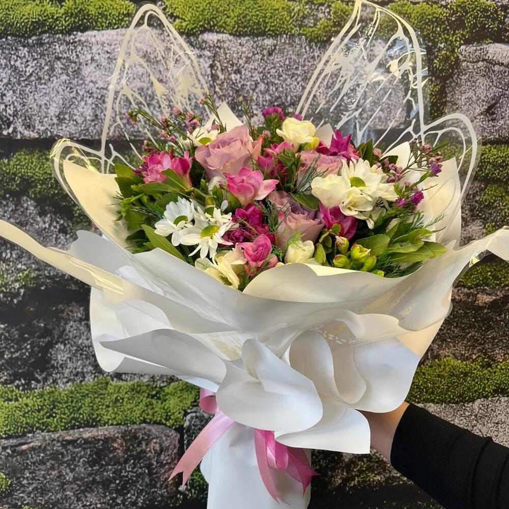 KELEBEK SARIM MEVSİM ÇİÇEKLERİ BUKETİ