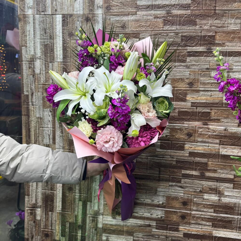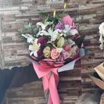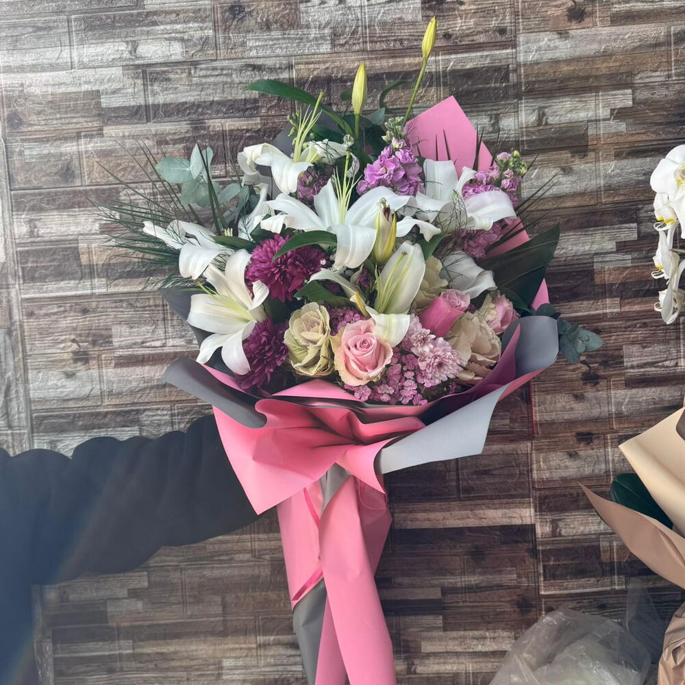 gül - 6 adet okaliptüs - 5 adet papatya - 4 adet lilyum - 2 adet şebboy - 4 adet hüsnü yusuf - 4 adet ökse otu - 3 adet