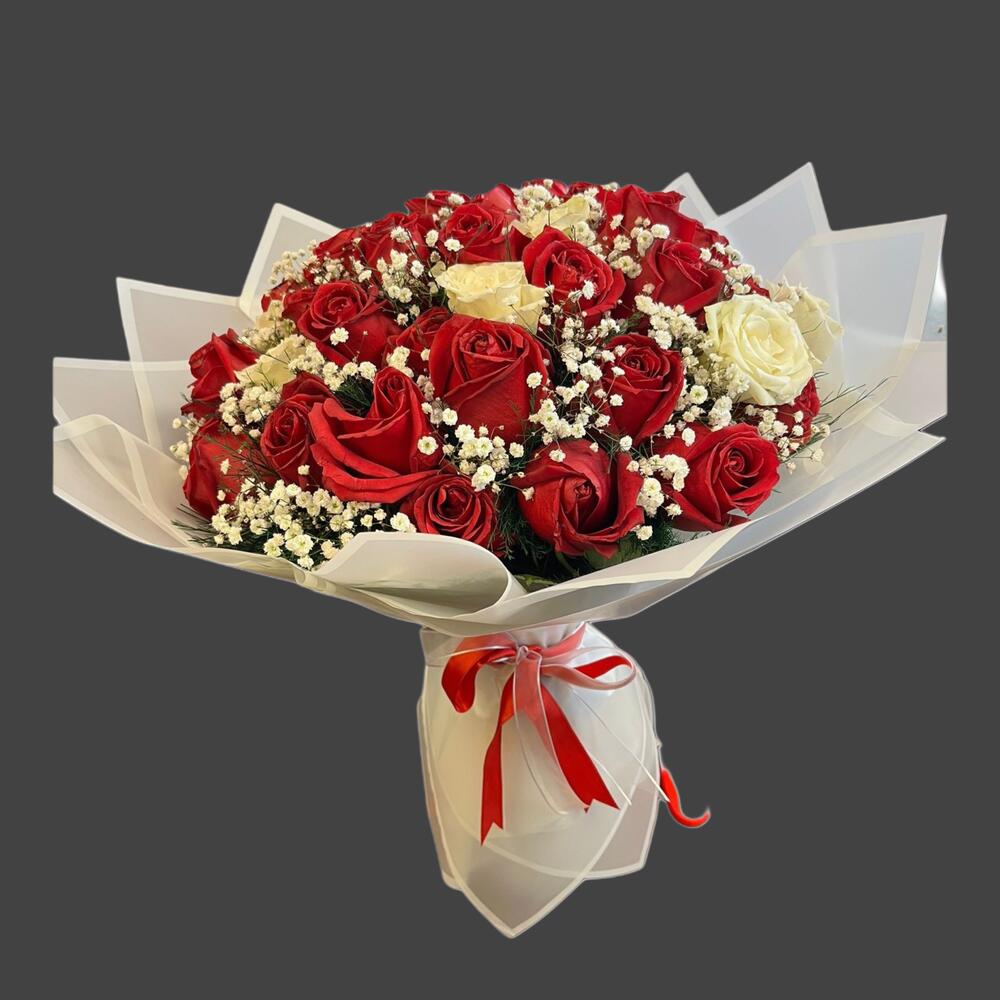 🌹 Kırmızı Beyaz Aşk Buketi – 41 Adet Gul Zarafeti 💫