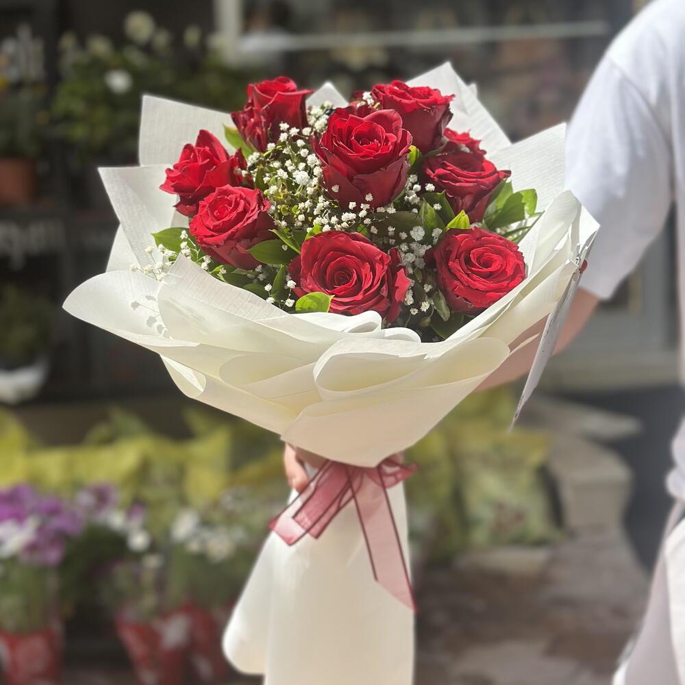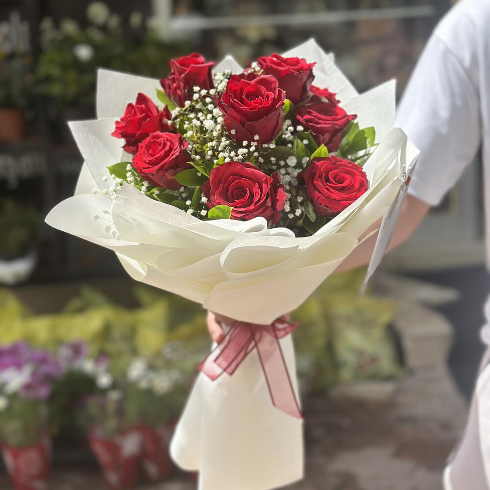 Bu zarif çiçek buketi, 10 adet kırmızı gülden oluşmaktadır. Sıcak ve enerjik renkleri ile sevdiklerinizin yüzünde tebessüm oluşturacak bu buket, her türlü özel gün ve kutlamalar için ideal bir armağandır. Kırmızı güller; aşıkların, dostların ve aile bireylerinin birbirlerine sevgi ve saygılarını ifade etme şekilleridir. Bu çiçeklerin benzersiz güzellikleri, onları her zaman en çok istenen ve popüler çiçekler yapmıştır.