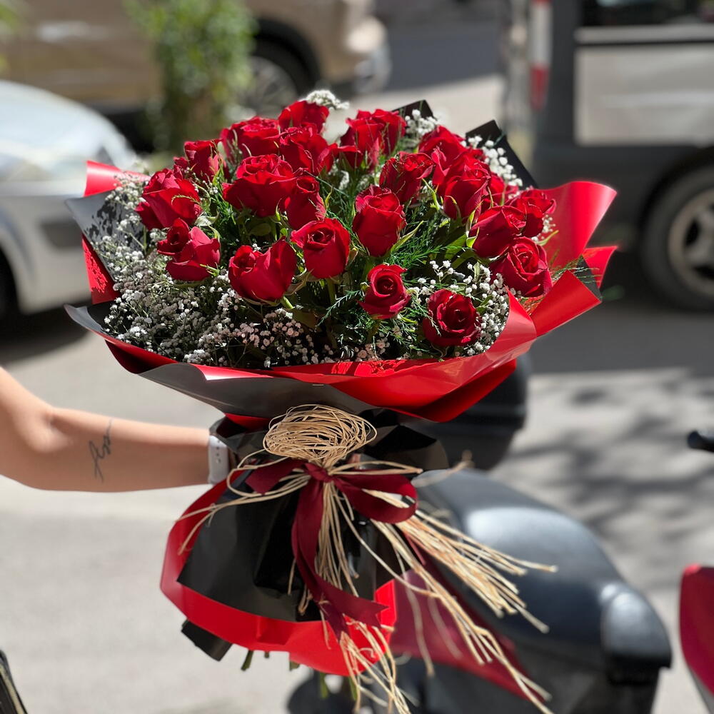 Bu büyüleyici mono buket, lüksün ve tutkunun simgesi olan 25 adet kırmızı upperclass gül ile hazırlanmıştır. Her bir çiçeği özenle seçilmiş ve buketi oluşturacak şekilde titizlikle düzenlenmiştir. Kendinize veya sevdiklerinize mükemmel bir hediye olacak bu mono buket, her ortamı büyüleyici bir cazibe ile doldurur.