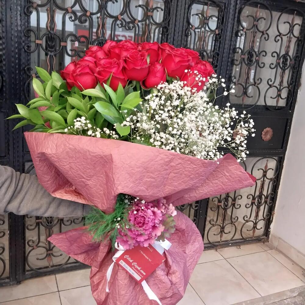 Bu muhteşem mono buket, 31 adet taze ve canlı kırmızı gül ile hazırlanmıştır. Sizlere ya da sevdiklerinize sevgiyi, tutkuyu ve saygıyı ifade etmenin en güzel yolu olan bu gül buketi, her özel anınızı unutulmaz kılabilir. Kendiniz için alın ya da sevdiklerinizi şımartın ve onlara bu kırmızı gül buketinin sunduğu ölümsüz aşkın ve zarafetin tadını çıkarmalarını sağlayın. Bu maşallahlık buket ile aşkınızı, sevginizi ve tutkunuzu ifade edin.