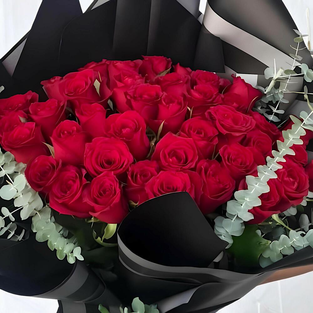 Eucalyptus - 10 adet kırmızı gül - 25 adet